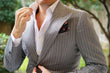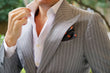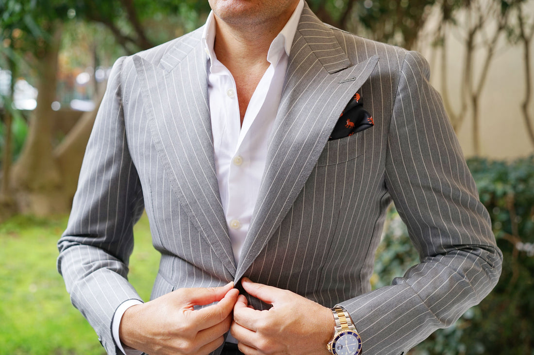 The Japanese Ezo Red Fox Handkerchief is sure to add a mischievous hint of character to your snazzy ensemble. The Fox has always been a stylish creature and the Japanese foxes are particularly famous for their quick wit and benevolence. A beautiful and independent animal, foxes are also recognized for their gorgeous coats and skill at poker. The Brothers themselves are renowned for their skill at the poker table their only defeat was at the paws of a particularly wily fox, during a tournament held at the base of Mt. Fuji. Having won the table, the fox promptly retired, slipping out the back door quickly, leaving his fine coat on the back of his chair. It was that coat that formed the basis for this stellar motif, paired perfectly with a noir body.