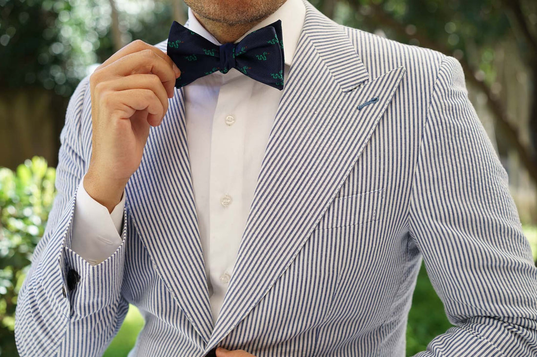 OTAA's Jelly Snake Self Tie Bow Tie will have you slithering through the day with style. A fun fact about snakes is that they don’t have eyelids and their jaws are so flexible they can devour prey up to 3 times the size of their head. If this doesn’t scream “majestic” and “bow tie design worthy”- the Brothers at OTAA don’t know what does!