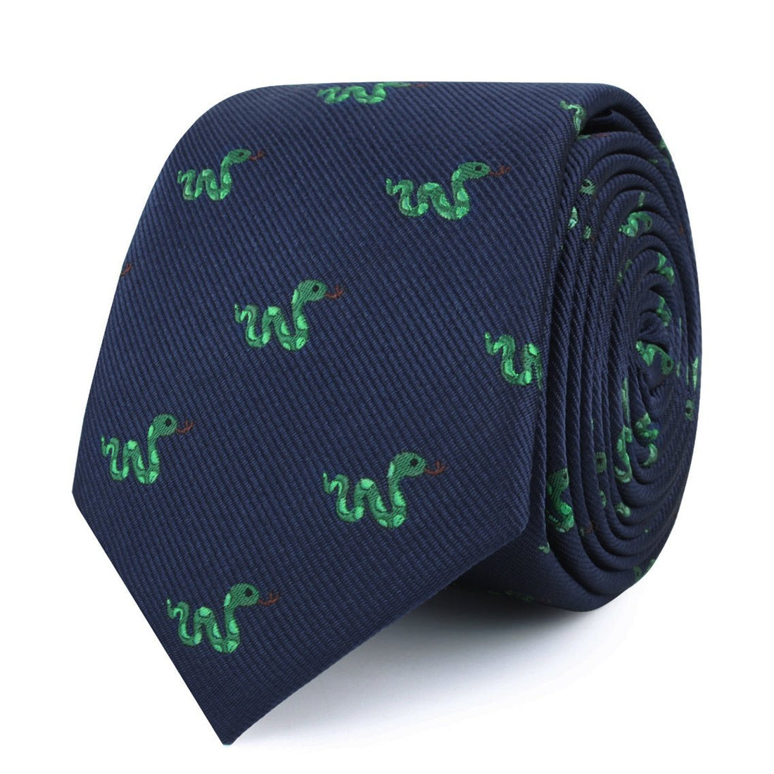 Green spotted snakes slither across an elegant navy blue canvas. Offering your styles superior quality, this thin tie was crafted by hand and tailored from a plush, finely woven fabric. Let the exquisite diagonal embellishments on the Jelly Snake Skinny Tie add a high-quality, textured appeal to your ensembles. Designed exclusively by the Brothers at OTAA.