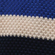 OTAA's Jimmy the Gent Blue Striped Knitted Tie is designed with bold stripes to emanate a sense of confidence in your looks. This handcrafted tie is curated from a plush textural knit and features a square-cut finish for a classic appeal.