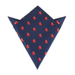 On this design, vibrant red and orange seahorses dance across a sophisticated navy blue base, giving your styles an outlandish perspective. Tailored from a plush, woven material and constructed with a hand-stitched approach, this handkerchief is as luxuriously comfortable as it is stylish. The elegant diagonal textures provides an exquisite way to finesse your style. Designed exclusively by the Brothers at OTAA.