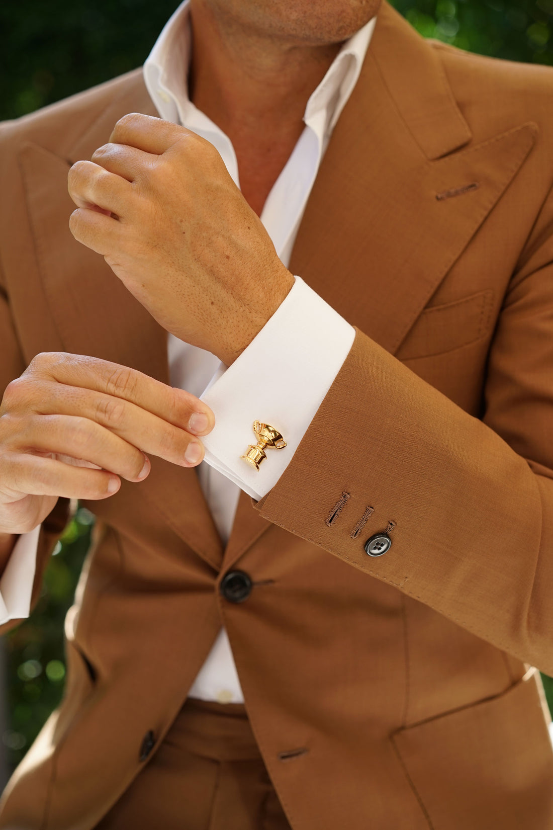 Shaped to manifest enchantment, the Kentucky Derby Trophy Cufflinks is a must have to any dashing gentlemen. Its rich shade of gold makes it even more sophisticated and timeless that will compliment your formal attire. Be ready to receive such overwhelming compliments by just how astonishing you are together with this epic piece.