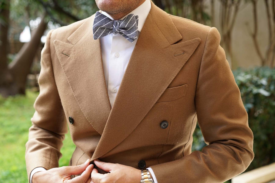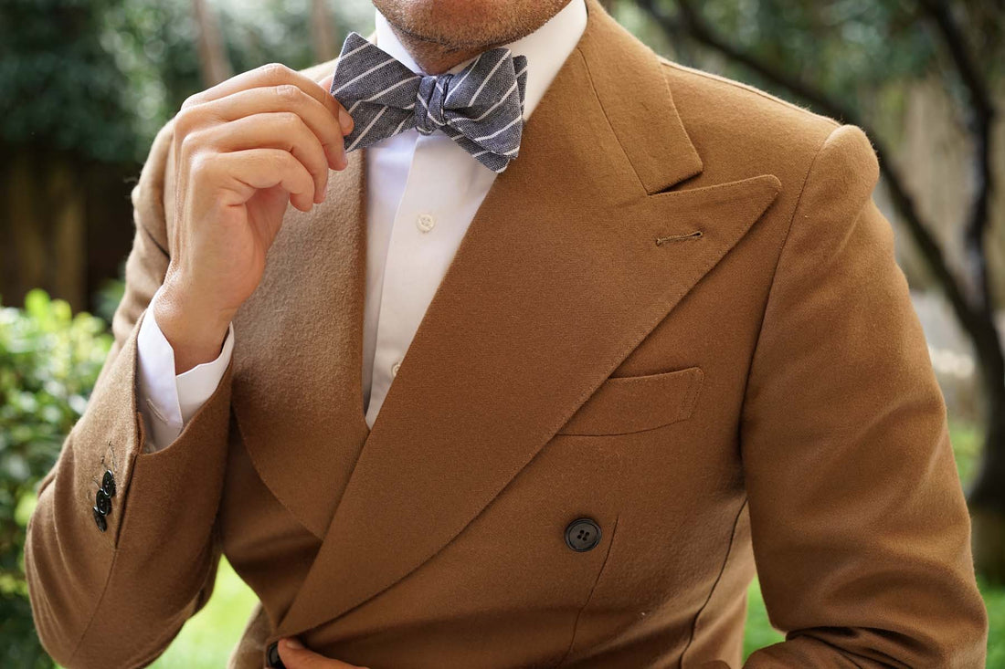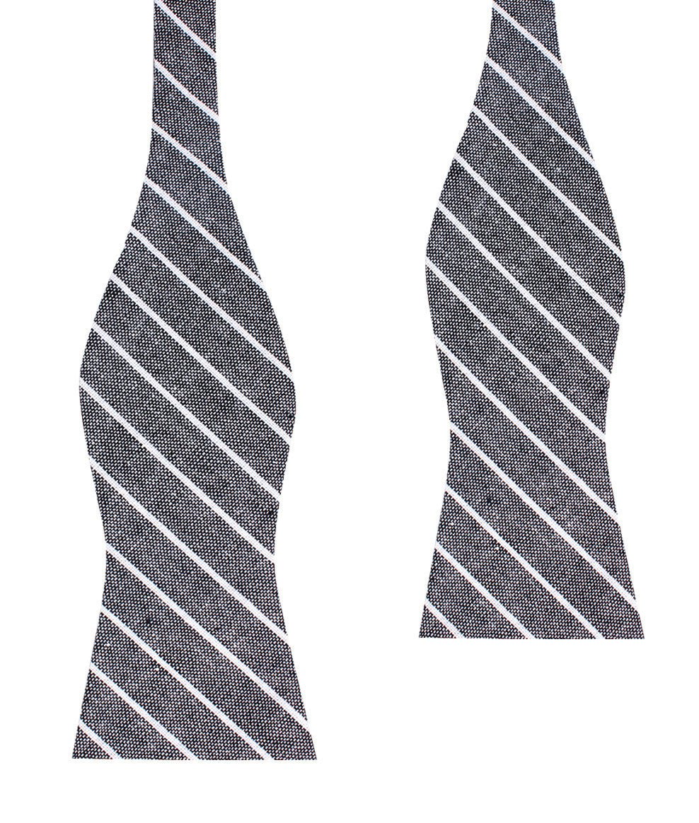 This Kettle Linen Black Pinstripe Self Tie Bow Tie showcases impeccable features. Designed to add a sophisticated tone to your everyday tailoring, this superb untied bow tie boasts a refined black palette with hand-stitched details. Exclusively designed by the Brothers at OTAA, this untied bow tie features a white pinstripe pattern. An eye-catching detail to your formal assemblage, this Kettle Linen Black Pinstripe Self Tie Bow Tie provides a knock-out staple.