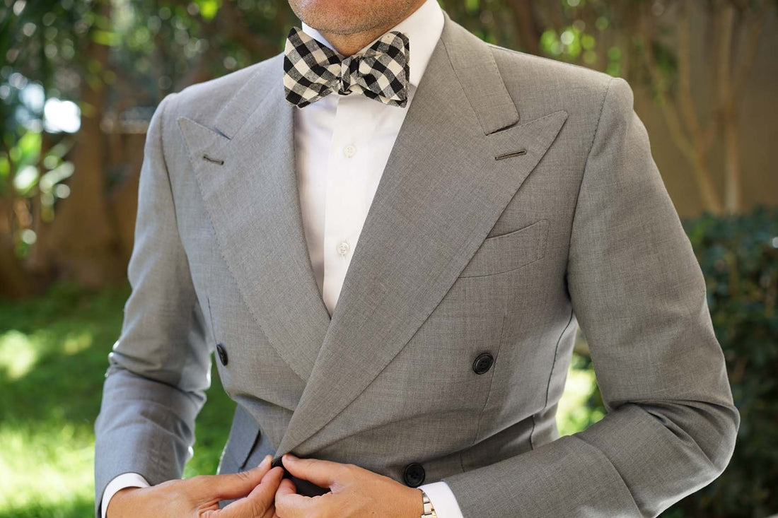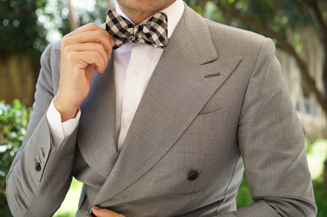 Khaki & Black Gingham Linen Self Bow Tie