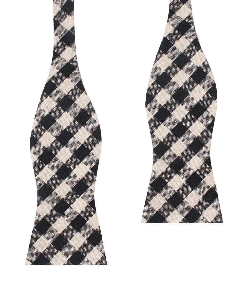 Khaki & Black Gingham Linen Self Tied Bowtie