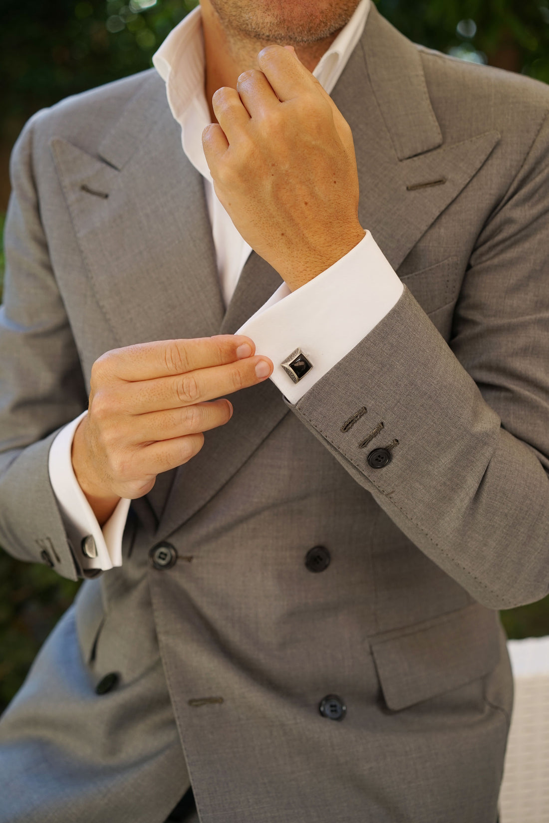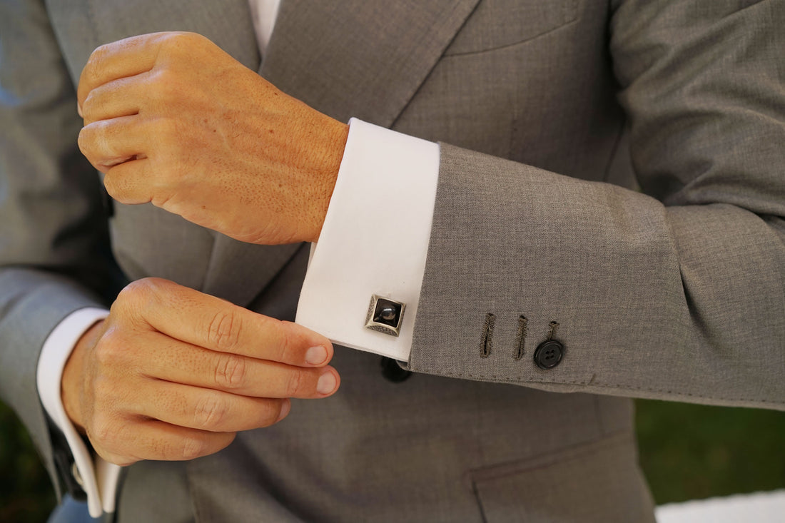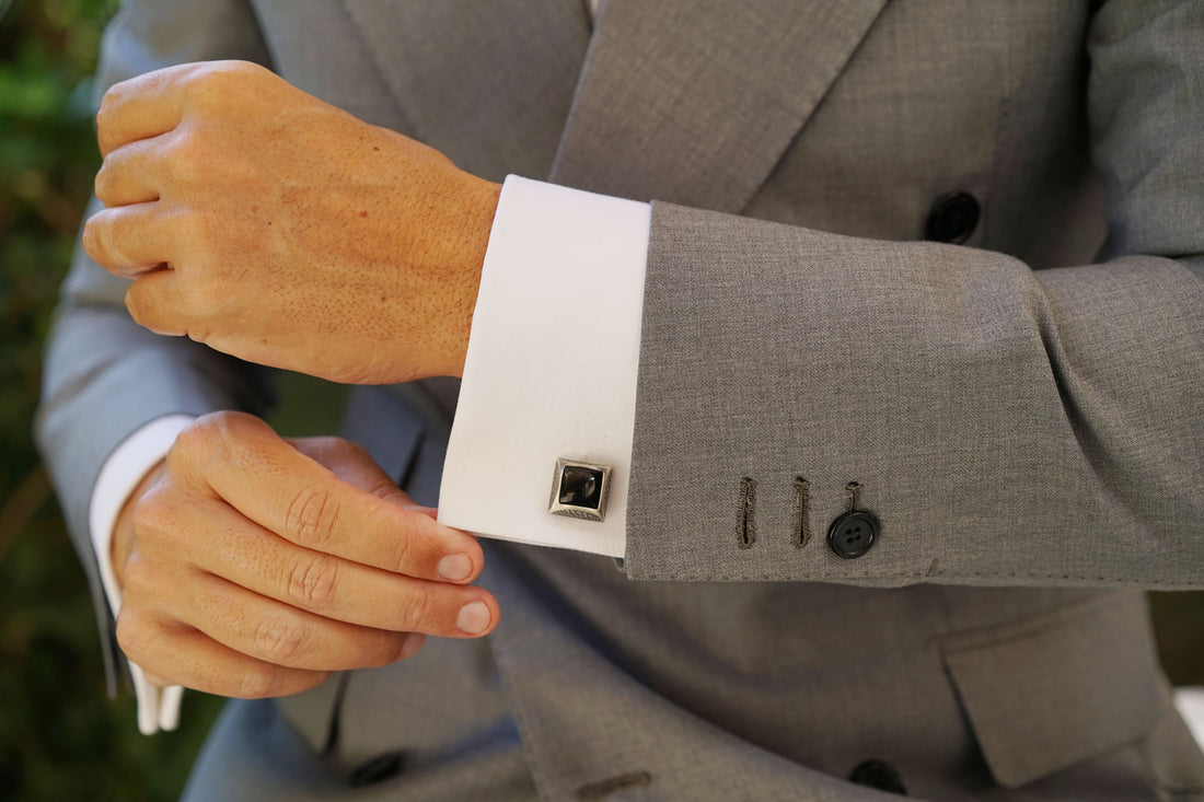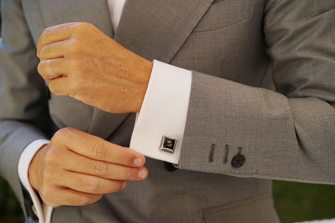Inspired by a figure of ancient Egyptian nobility, these Khufu Black Stone Cufflinks will incite your attire with ancient charm and flair. Khufu was the second ruler of the ancient Egyptian monarch, reigning from 2589 BC-2566 BC. During his six decade rule, Khufu commissioned the Great Pyramid of Giza, which still stands as one of the Seven Wonders of the World. OTAA's Khufu Black Stone Cufflinks exude an aura of old world charm that was designed to embolden your suit with greatness. These cufflinks are flawlessly hand-chiselled from rhodium and coated in a luxurious antique silver finish with a black centrepiece. Executed with immaculate precision, these cufflinks are adorned with an intricate pebble-patterned perimeter and a glossy centrepiece. With an angular cut and dimensional body, these Khufu Black Stone Cufflinks are brimming with exquisite detail. The antique silver finishing on these cufflinks provides a deep, dual-toned palette to add a vintage flair to your ensemble.