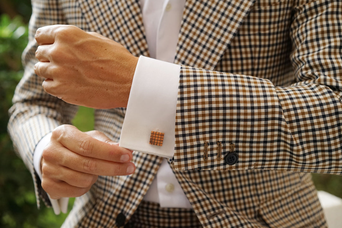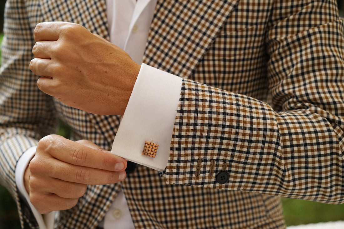 Expertly hand-chiselled from rhodium, these Kiel Antique Copper Cufflinks are adorned with grid-line embossments. The antique brass finishing provides a deep dual-toned palette to add a vintage flair to your ensemble.