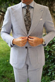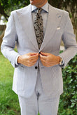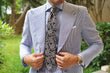 Inspect the well-defined weave of the white, beige, and midnight blue paisley ensemble, see for yourself the decorative craftsmanship of this hand-made necktie, set against a rippling satin background of shimmering black. The King of Persia Black Paisley Tie can be yours if you dare claim it.