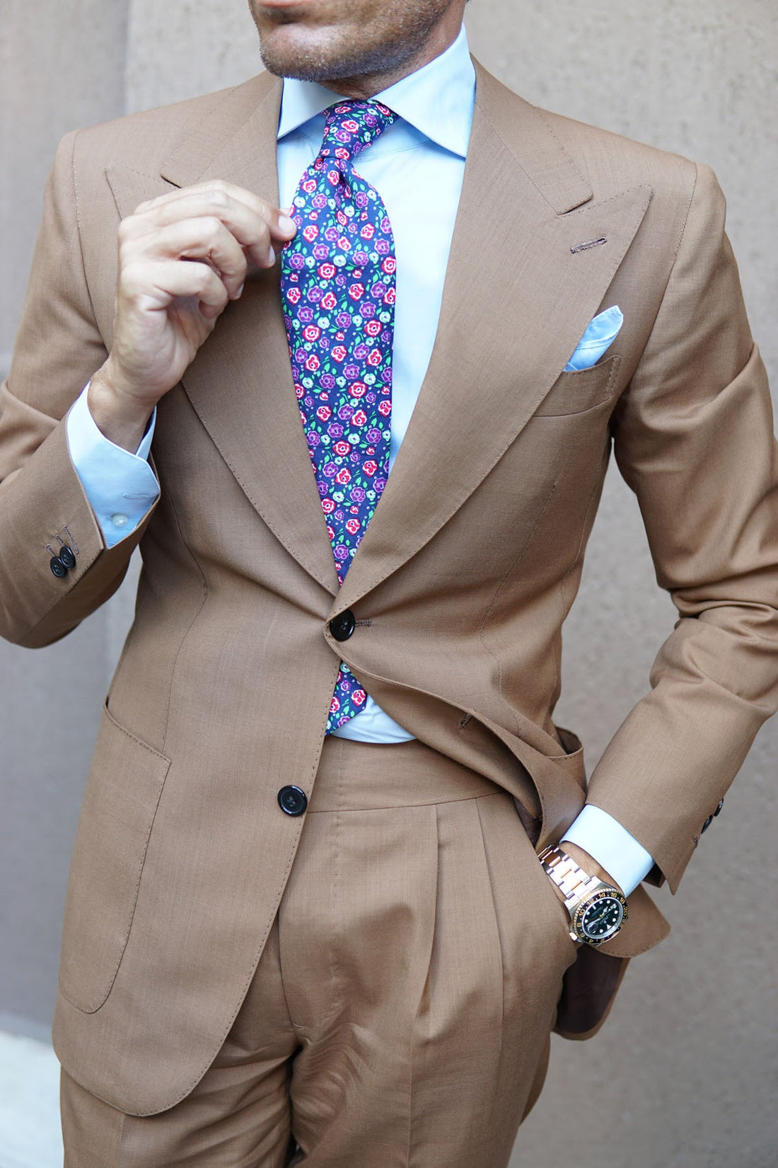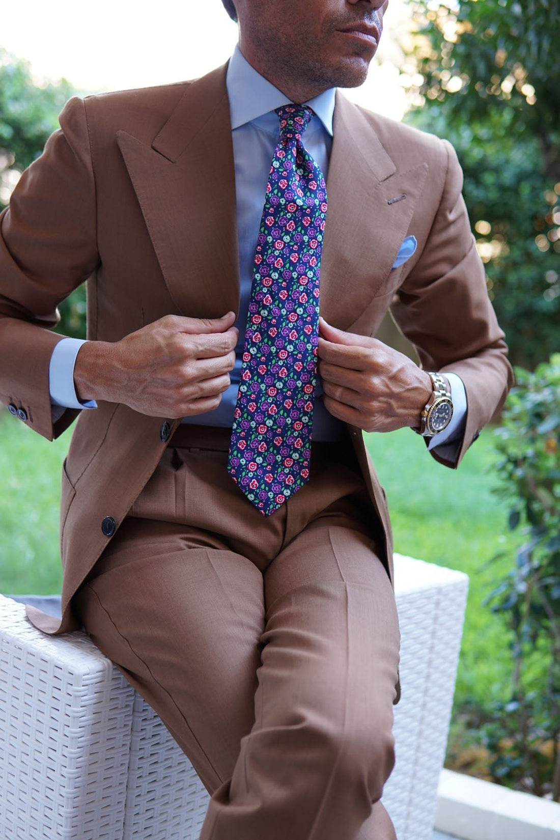 Artistically crafted by the dedicated Brothers at OTAA, this La Favia Rose Tie brings a high-fashion presence to your formal tailoring. Sweetly patterned with blossoming florals, this necktie gives an elegant finish to evening looks. The colourful pink and purple florals are complemented by white and green details for a sophisticated point of difference. The deep navy palette brings a refined finish to the eye-catching flower motifs. Designed exclusively by the Brothers at OTAA.