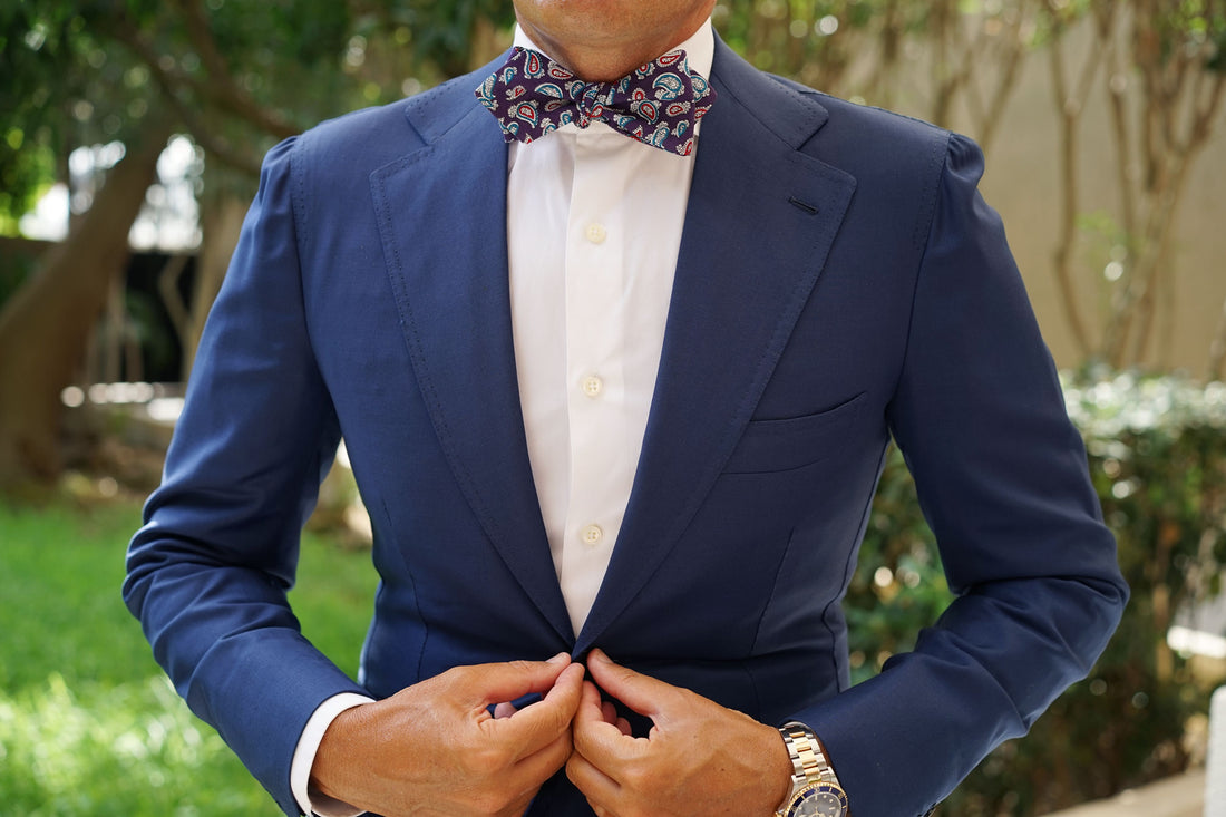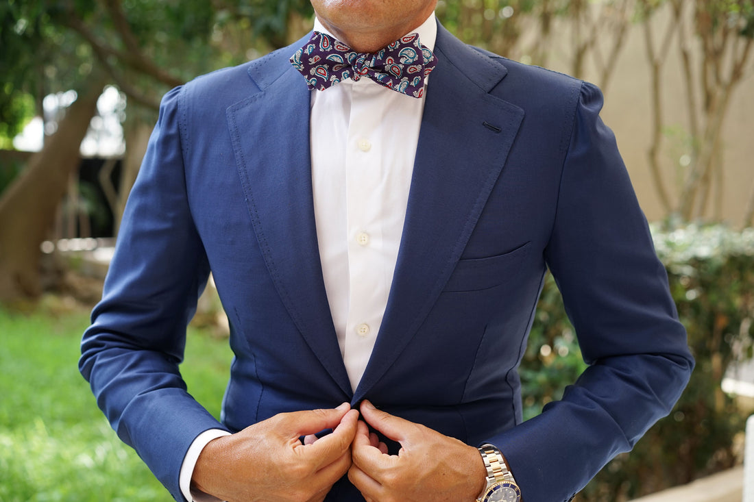 To aid with the design of the Lago di Bolsena Purple Paisley Diamond Self-Tie Bow Tie, the Brothers at OTAA made a quick trip to Italy. Purely for research purposes, of course. One of the brothers was busy working hard under the shade of a palm tree when he suddenly spotted an exotic purple bird, “That’s it. That bird is the inspiration for our diamond bow tie. Our work here is done!” The brothers spent ten more days lying on the beach before finally going home. Inspired by genuine hard work and really cool bird, OTAA gives you the Lago di Bolsena Purple Paisley Diamond Untied Bowtie.