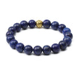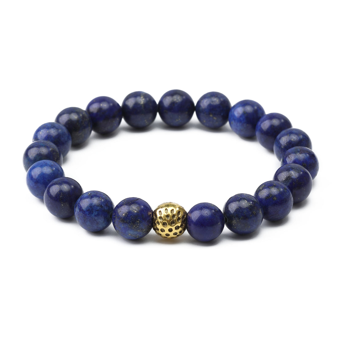 Lapis lazuli is a deep blue metamorphic rock, prized for its intense blue colour and lustre finish. The royal blue palette is richly highlighted by a gold charm that will accent your suit with an air of nobility. Pair this Lapis Lazuli Gold Lava Bracelet with a suit jacket and necktie for formal events, or a smart shirt for casual wear.