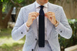 A lustrous alternative to an all-black palette, this Lennox Navy Knitted Tie will imbue your tailored looks with an air of refinement. Navy derives its name from the British Royal Navy who have sported the deep colour on their uniforms since 1748. Conveying a sense of elegance and importance, the solid toned features of this tie will amplify the exclusivity of your casual and formal attires. This exclusive Lennox Navy Knitted Tie was designed in-house and features a luxurious plush knit that will see you through any occasion with style and superior comfort. This marvellous knit is finessed with a simple square-cut end that will escort you superbly from boardroom meetings to evening soirees with ease.