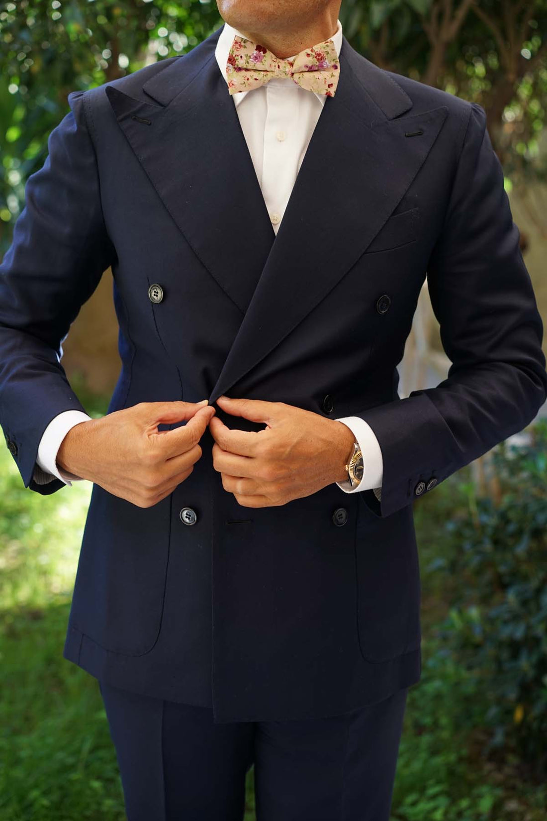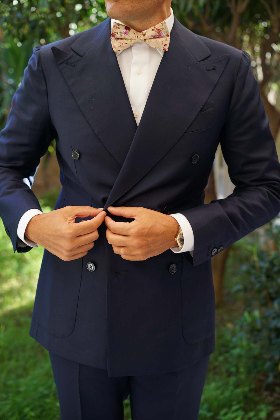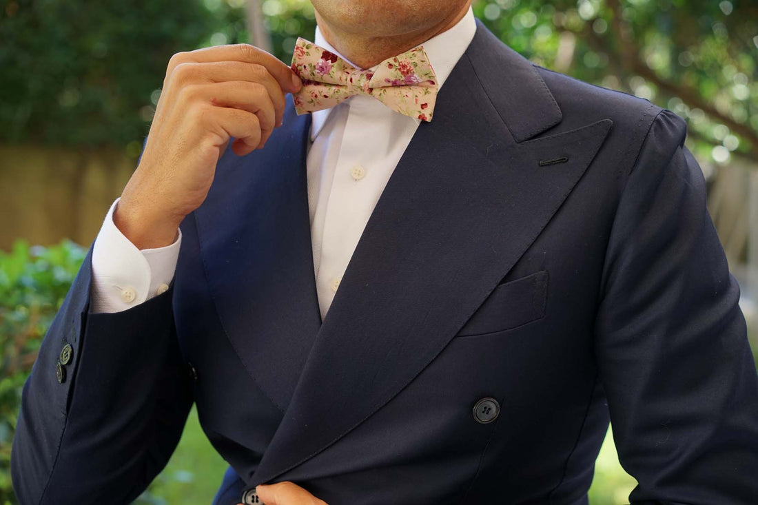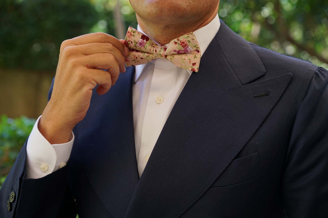 Add a flourishing tone to your tailored ensembles with OTAA's Les Elysees Floral Bow Tie. Elegantly decorated with luxurious blooms, this bow tie perfectly marries contemporary style with classic sophistication. The pink, purple, and plum florals sit atop a light pink base with sumptuous green accents. With handcrafted details and a plush cotton fabric, this Les Elysees Floral Pre-tied Bowtie brings a high-quality aspect to your evening attires. Designed exclusively by the Brothers at OTAA, this bow tie is a faultless option for bringing romance to your looks.