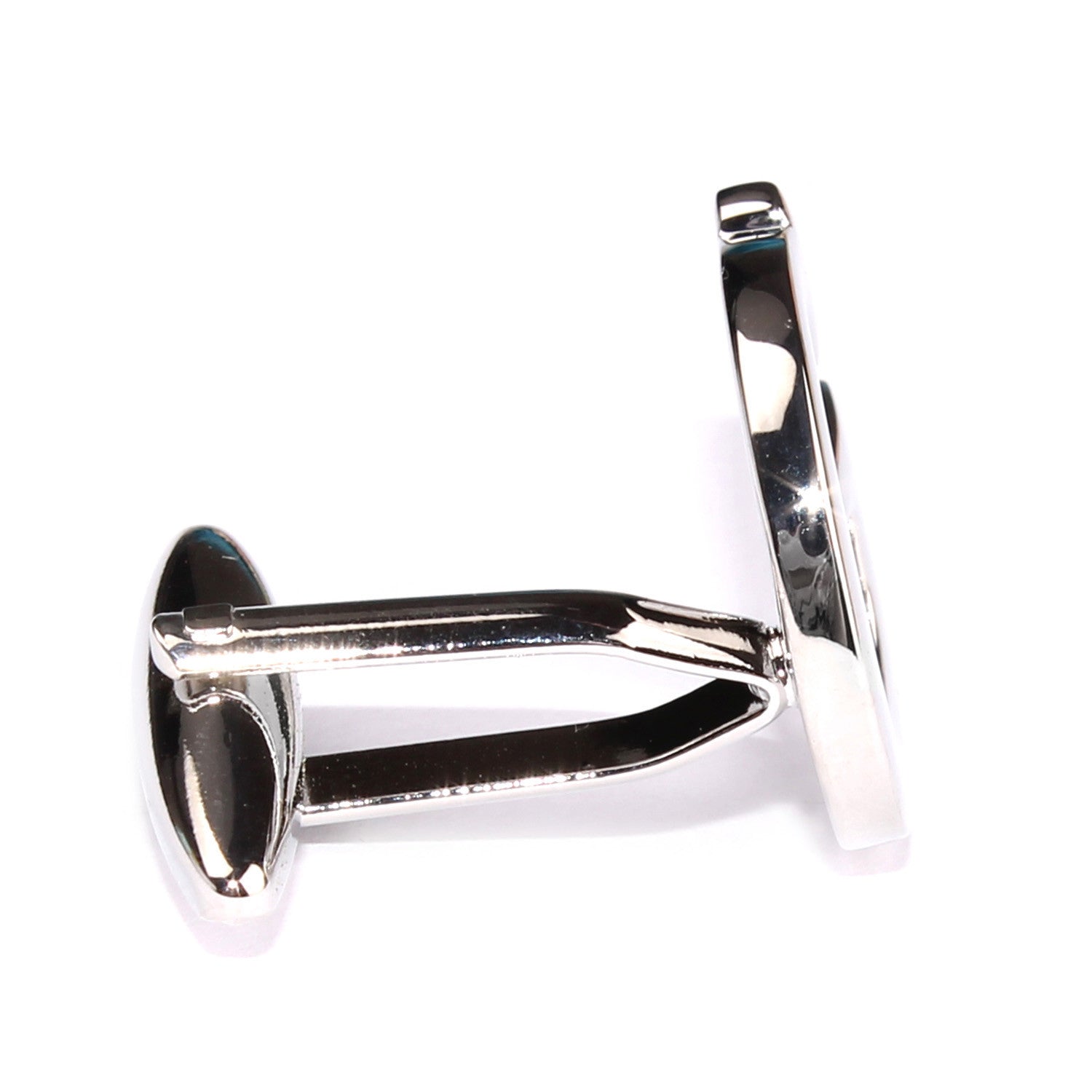 Includes a small cylinder at the back that rotates 90 degrees to hold the cufflink in place