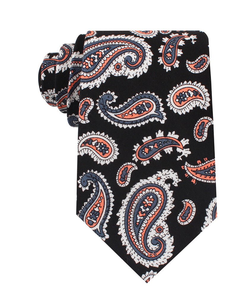 Give a lavish tone to your tailoring with OTAA's Levanzo Coral Paisley Tie. Beautifully hand-stitched and tailored with expertise, this Levanzo Coral Paisley Tie showcases OTAA's high-quality philosophy. The sophisticated black palette is paired with peach, blue and white hues in an intricate paisley teardrop design. Wear this superb necktie to achieve a regal outlook at formal occasions. Alternately, take it to the boardroom for a confident staple. Designed exclusively by the Brothers at OTAA.
