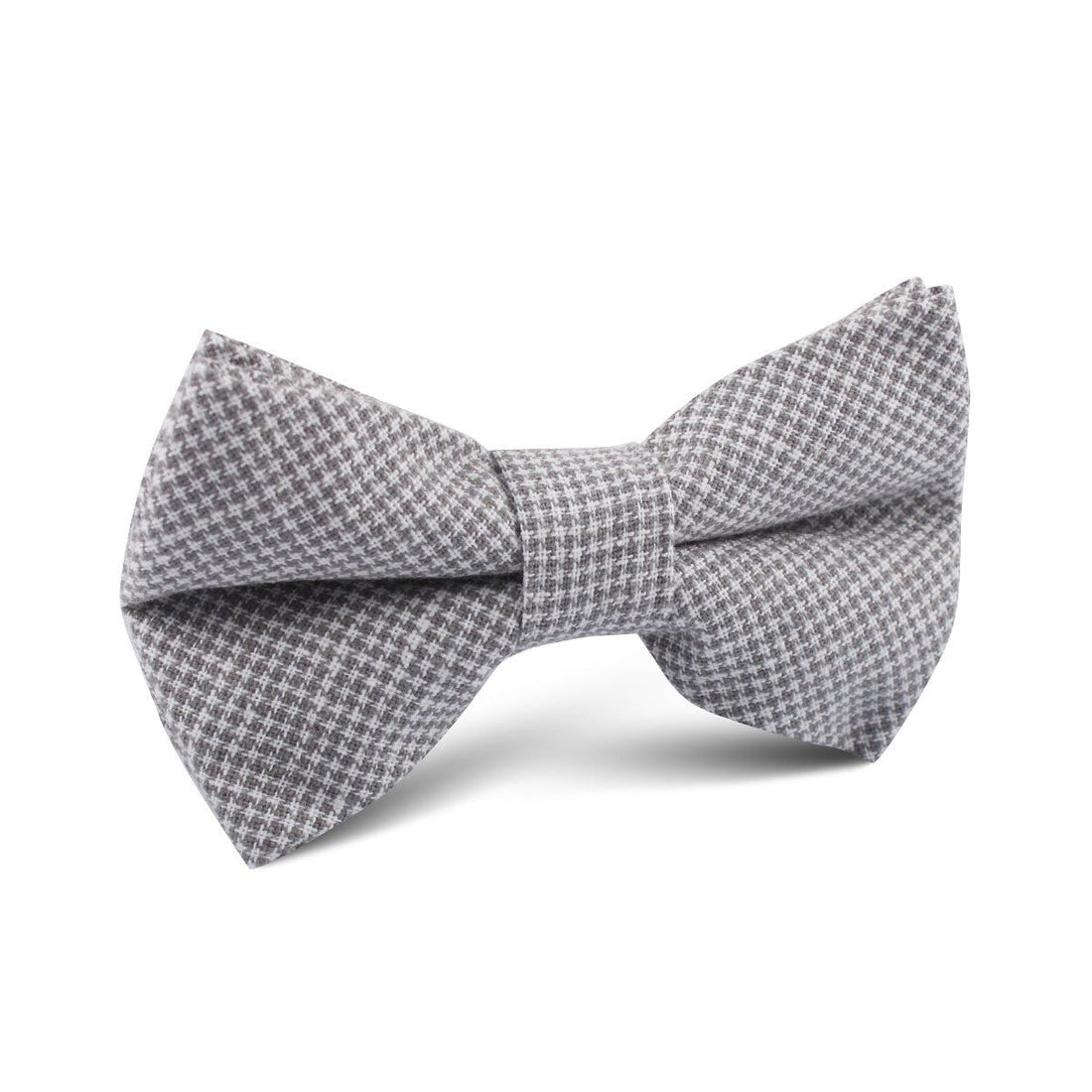 Traditionally tailored by hand and cut with today's gentlemen in mind, this Light Grey Houndstooth Linen Kids Bow Tie exudes sleek sophistication. This trim piece comes in a handsome Houndstooth texture made from pure linen. A patterned silk pocket chief and leather monk strap shoes will complete a debonair outfit.