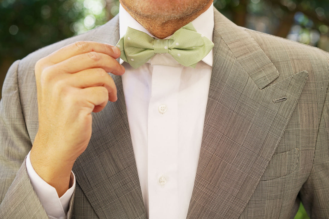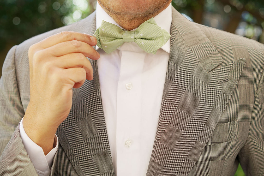 Gift your wardrobe a refreshing cornerstone with OTAA's Light Mint Pistachio Green Polkadots Diamond Bow Tie. Taking a classic polka dot design and incorporating a contemporary palette, the Light Minto Pistachio Green Polkadots Diamond Bow Tie makes a refreshing statement you'll be reaching for in years to come. The Brothers at OTAA constantly make it their mission to come up with designs that are backed by premium quality, and that's why this diamond bowtie has been designed in-house, hand-tailored and meticulously stitched by hand. Designed exclusively by the Brothers at OTAA.