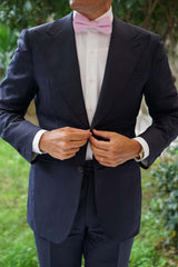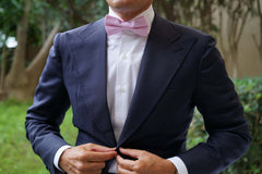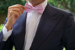 With an unmistakable air of quality, this handsome OTAA Bow Tie is woven with illustrious cotton. Team the light pink shade with a sky blue shirt and grey suit for an assured mix of colours.