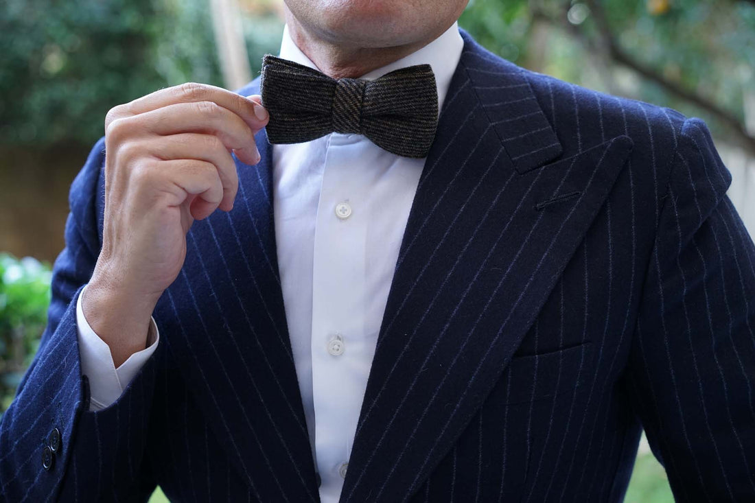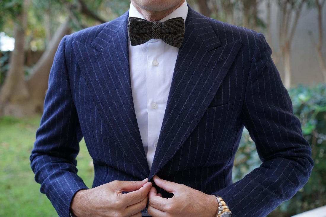 Luxuriously hand-sewn and tailored to perfection, this Lincoln Wool Pre-tied Bowtie boasts a feel of superior quality. This pre-tied bowtie features two tones of brown that are embellished in a horizontal striped pattern for a refined look. Fabulously thick and heavenly plush, this Lincoln Wool Bow Tie makes the perfect staple for the cooler months. Designed exclusively by the Brothers at OTAA.