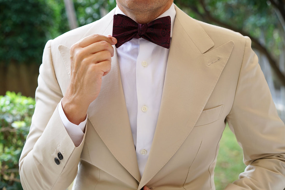 Mahogany Red Paisley Self Bow Tie has a rating of 4.5 stars based on 2 reviews.