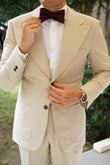 This richly coloured Mahogany Red Paisley motif is perfectly enhanced by the charcoal black canvas of the hand-crafted satin Untied Bow Tie. The lustre of the paisley etched pattern reflects a warm mahogany hue with the same elegance as a glass of expensive whisky, hoisted in a toast by The Brothers at OTAA to you, the most handsome gent out there. Come, feel the warm embrace of the Mahogany Red Paisley Untied Bow Tie.