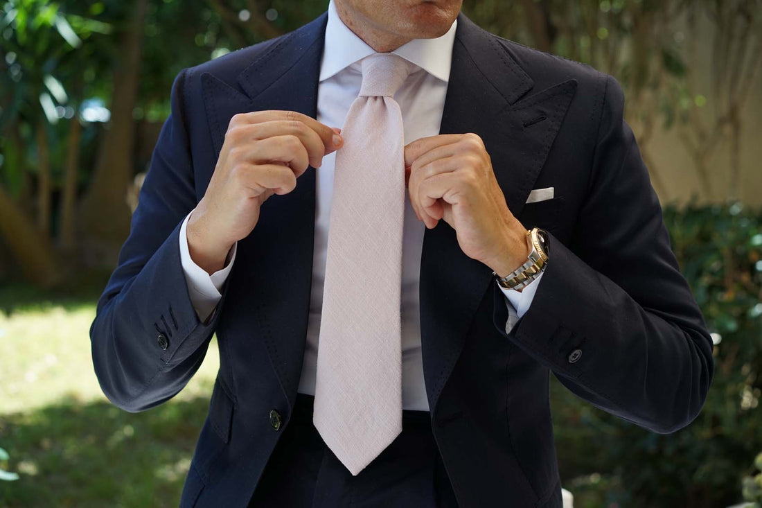 The rich linen enriches the visual scope of the necktie with subtle variations in the apparent texture and thickness of the hand-woven Blush Pink coloured thread. The tufted linen fabric is slightly coarse, with an overall texture of softness. The Maldivian Blush Pink Linen Tie will add an accent of distinct individuality to your outfit.