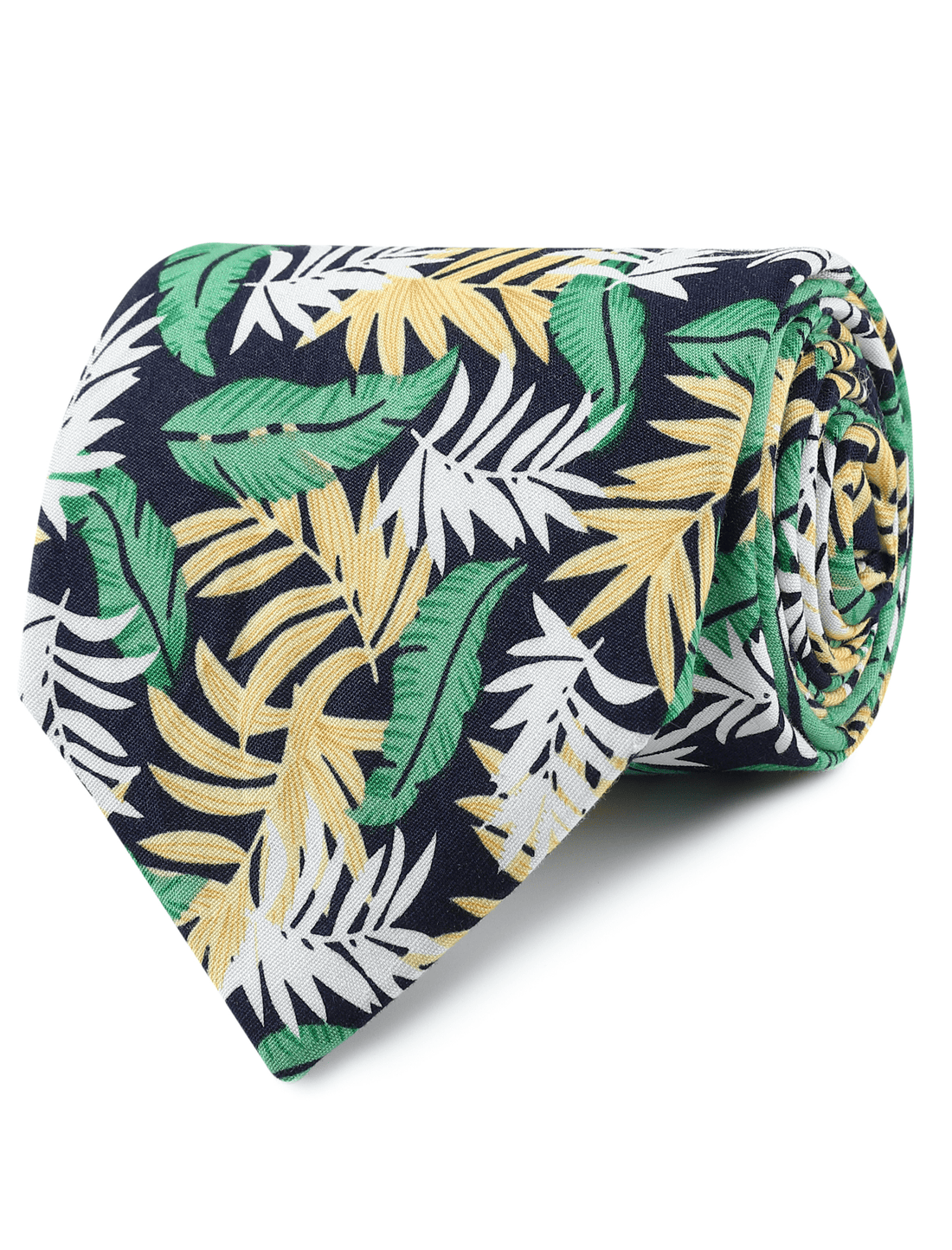 Step into paradise with the Mandalay Green Palm Necktie, a vibrant blend of tropical greens and soft yellow accents that evoke a sense of luxury and relaxation. This necktie, crafted from high-quality cotton, exudes sophistication while keeping comfort at the forefront. Its bold palm leaf design on a navy background offers just the right amount of visual appeal, making it perfect for those looking to make a statement in style.