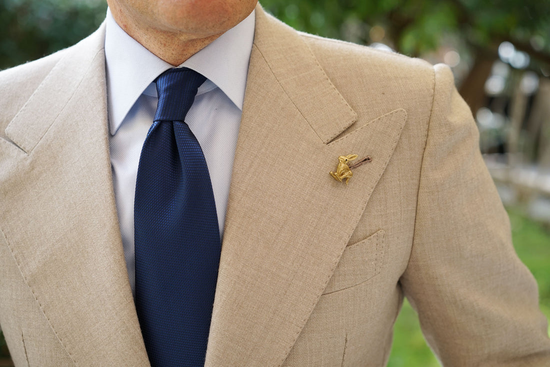 This luxurious item is finessed to perfection to give your evening looks a luxurious point of difference. Subtly textured, the March Hare Antique Gold Lapel Pin provides a multifaceted design. Wear it to complement your boardroom ensembles. Pairs well with tortoise inspired designs. Designed exclusively by the Brothers at OTAA.