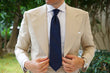 The hand-woven, elaborately stitched satin shimmers with a Midnight Blue sheen, lending an extra sense of dimension to the body. The high-quality fabric is finely textured and smooth overall. The Marine Midnight Blue Satin Tie is tailored exclusively by The Brothers at OTAA.