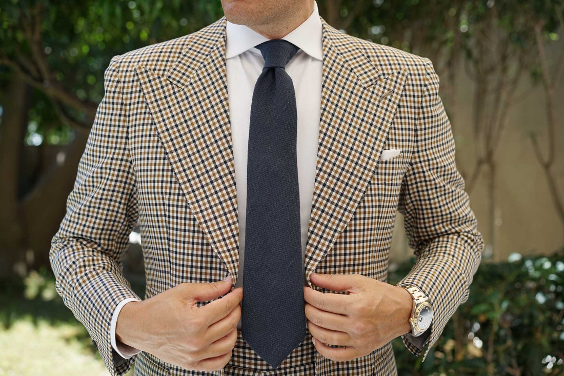 The Marine Navy Blue Linen Necktie carries itself with quiet poise, looking at this tie is like staring into the mysterious depths of a hidden lake, marvelling at the tranquil beauty and marine wonders that dwell below all at once, legend has it that if you stare at this one for too long you can become hypnotized into becoming an even more stylish version of your already impeccably dressed self!