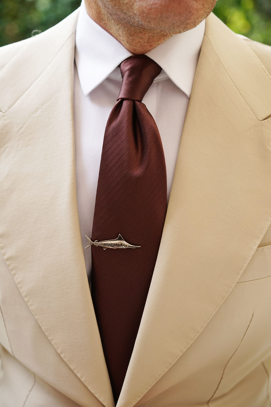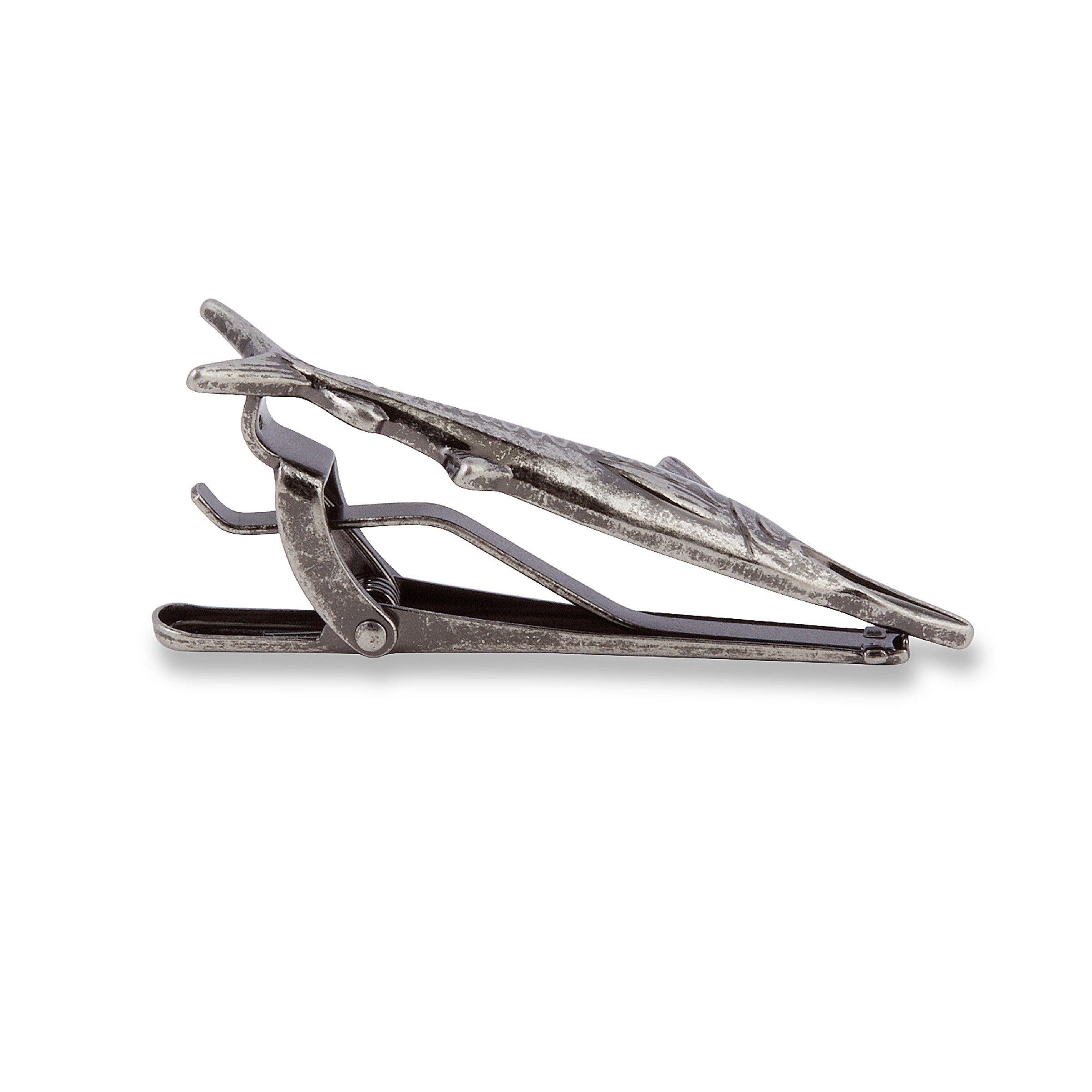 For those seeking an attention-grabbing accessory that leaves a lasting impression, the Marlin Tie Bar is the ideal choice. It will adorn your tie with a striking Marlin motif, covering approximately 3/4 of the width of our standard neckties and the entire width of our skinny ties, ensuring a distinctive addition to your attire.