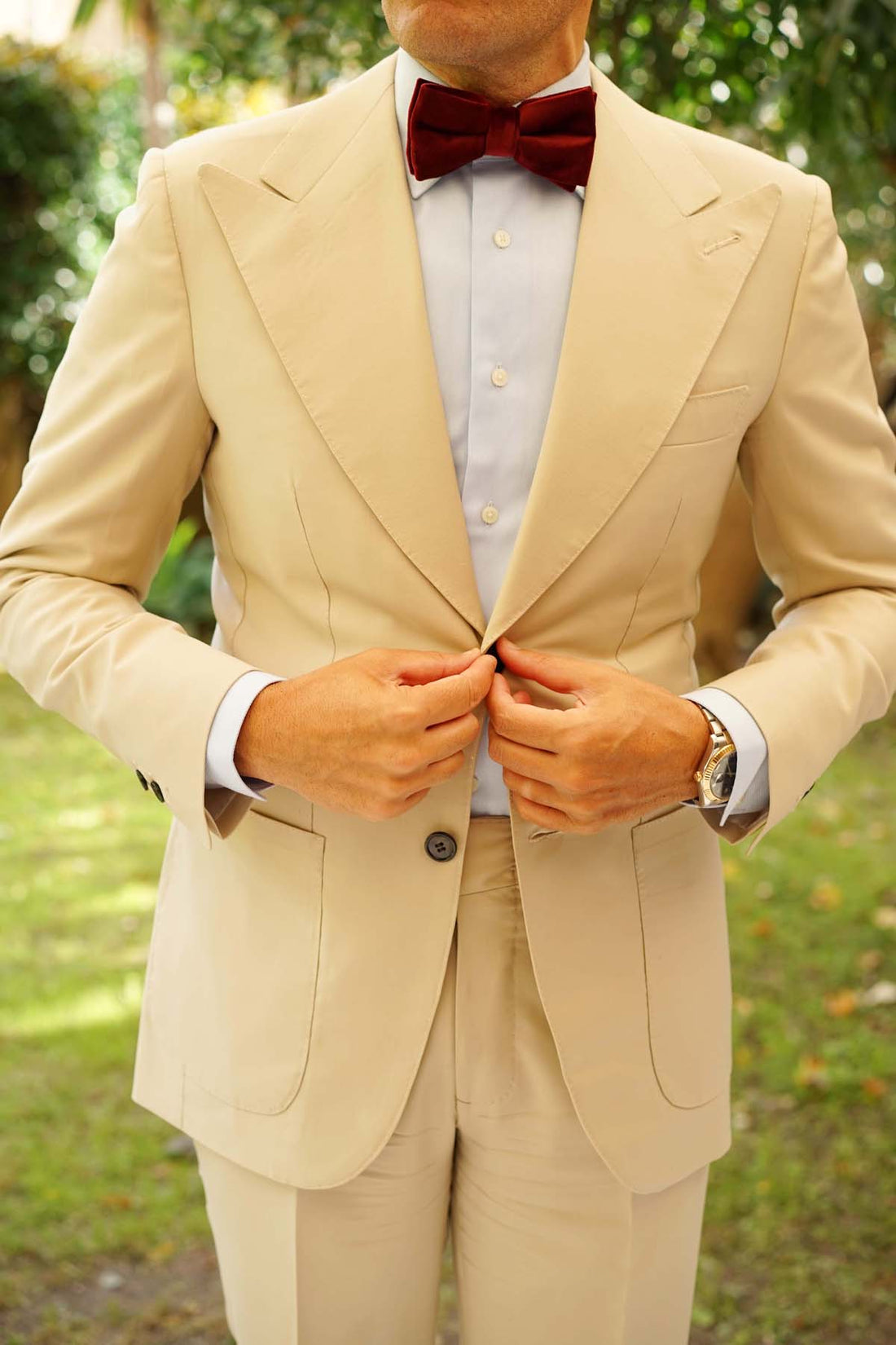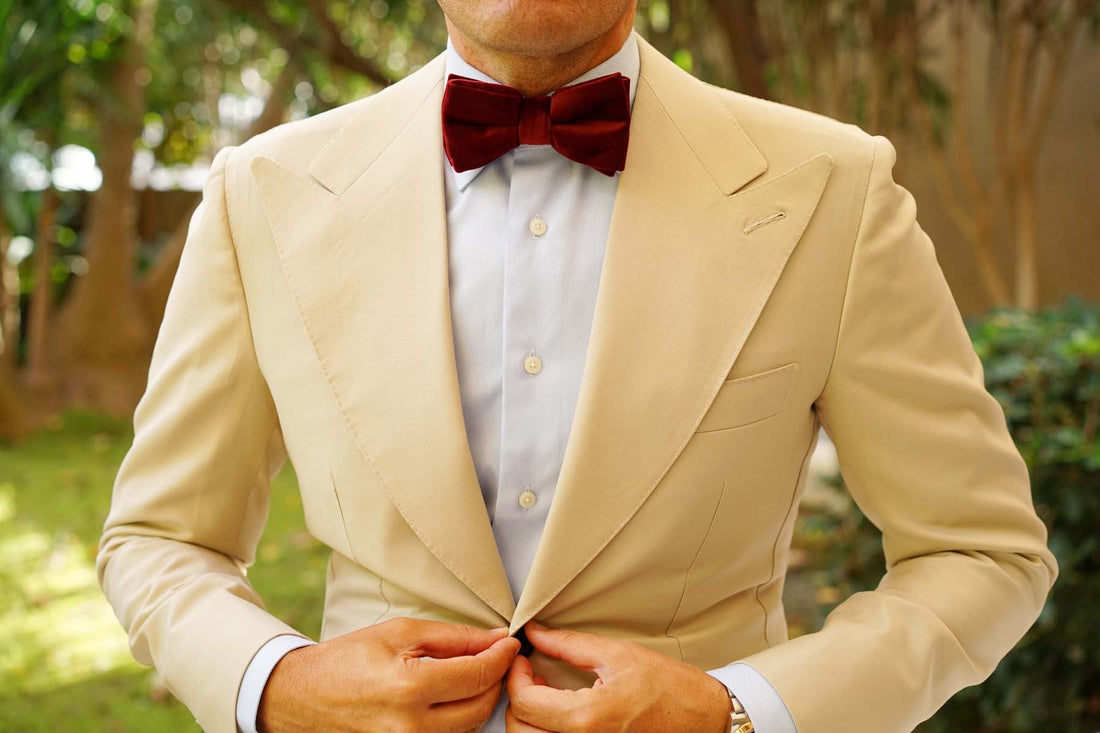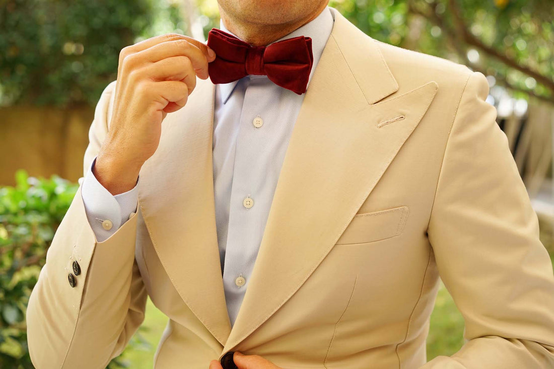 Bring an opulent attitude to your tailored wardrobe with the regal details of OTAA’s Maroon Velvet Bow Tie. The perfect statement for formal weddings, the Maroon Velvet Pre-tied Bowtie exudes a wealth of luxurious assets. Having been designed in-house and handcrafted from the most plush velvet material, this Maroon Velvet Bow Tie is a masterful combination of extravagance and comfort. It boasts a smooth, lightly tufted velvet fabric that will bring an exquisite element of texture to your tailored wardrobe. Let the Maroon Velvet Pre-tied Bowtie be your prized go-to whenever you need to make a sophisticated statement. Designed exclusively by The Brothers at OTAA.