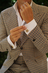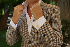 OTAA's Marseille Gold Cufflinks are a dashing statement. Originally founded in 600 BC as the Greek colony of Massalia and used as a port of trade, the charm of this French city has transcended time. Today, Marseille remains as a picturesque town that's a symbol of wealth and glamour within Europe. Inspired by the charm and elegance of this French city, these cufflinks are flawlessly hand-chiselled from rhodium and coated in a luxurious gloss gold finish. Executed with immaculate precision, these cufflinks are adorned with diamond embellishments and an angular-cut perimeter. The rich gold coating win cites a warm palette that will finish your attire with regality. An exquisite adornment to a refined ensemble, these Marseille Gold Cufflinks are an artefact of desire to the man with panache.