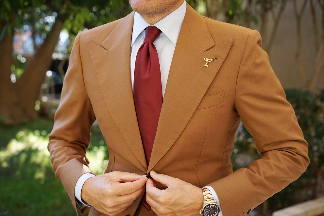 The regal gold finish and intricate cup design encapsulates the prestigious atmosphere of the Melbourne Cup. Boasting luxurious details in an elegant style. This lapel is flourishing with textural intricacy. The cup design is embossed on a hand-chiselled rhodium, gold finished pin that delivers unparalleled quality and style. With excellent craftsmanship, OTAA's Melbourne Cup Lapel Pin will have you channeling champion style.