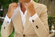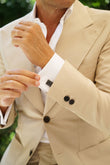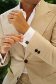 Includes a small cylinder at the back that rotates 90 degrees to hold the cufflink in place