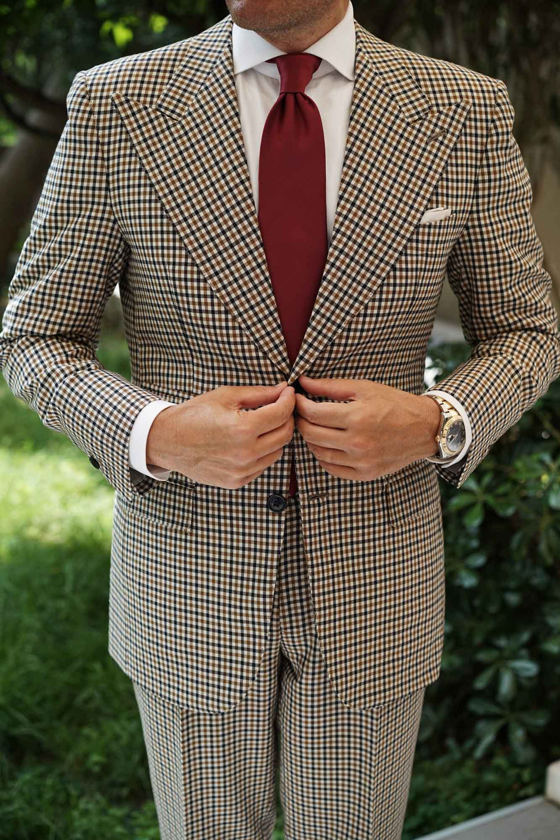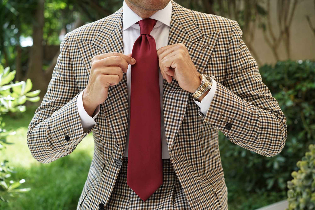 The Merlot Burgundy Twill Necktie is a shining example of high-class taste, seamlessly marrying sophistication and elegance. Full-bodied with a lustrous maroon colour, containing aromas of rich dark currants, pomegranate skins and gushing cranberry. Piquant acidity stabilizes the necktie nicely with the robust tannins. Deep red linens, laden with deluxe thread, whisked soil, charred fabric, roasted satin and mulled humour.