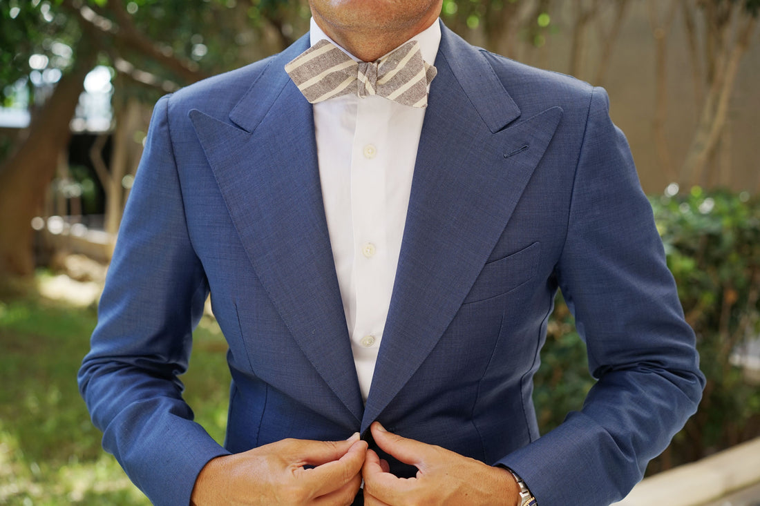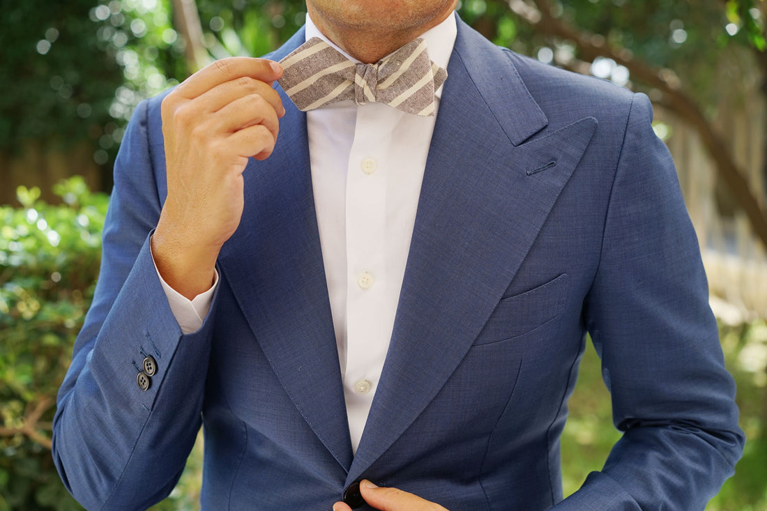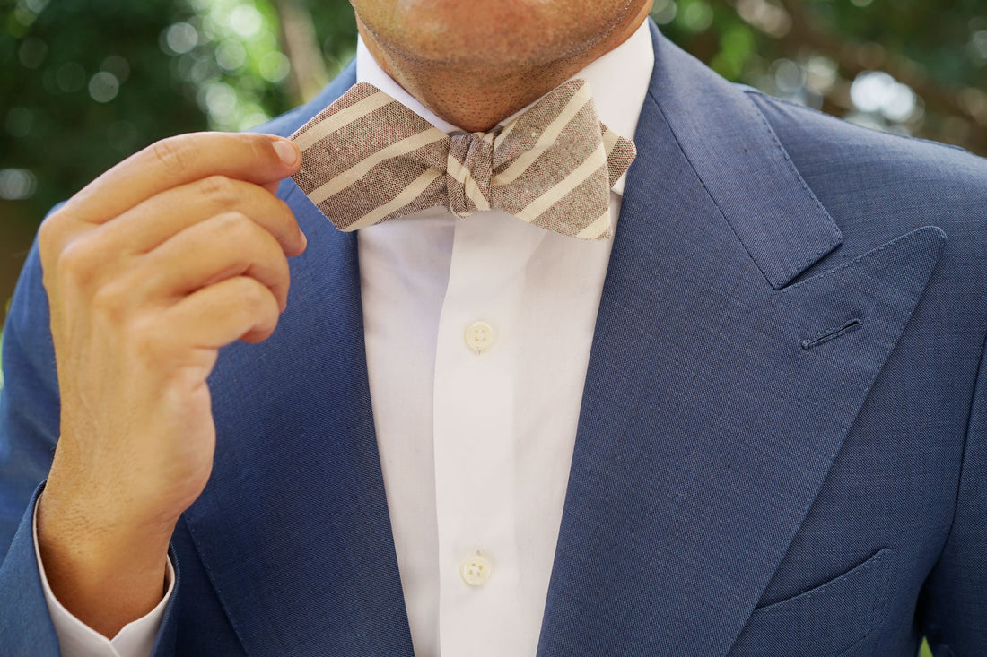 OTAA’s Mersin Brown Stripe Chalk Linen Diamond Self-Tie Bow Tie is a knock-out. Mersin resides on the coast of Turkey and is known as the 'Pearl of the Mediterranean'. A seaport to the Roman and a colony to the Ottoman Empire, Mersin has seen the settlements of the Hittites, Assyrians, Persians and Greeks over the course of centuries. Inspired by history, OTAA's Mersin Brown Stripe Chalk Linen Diamond Untied Bowtie exudes a vintage appeal.