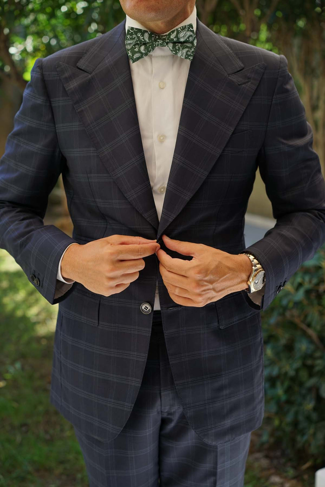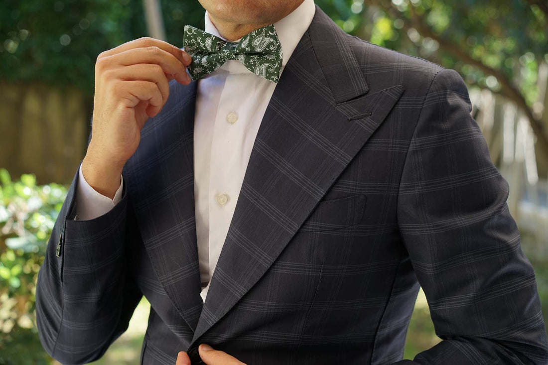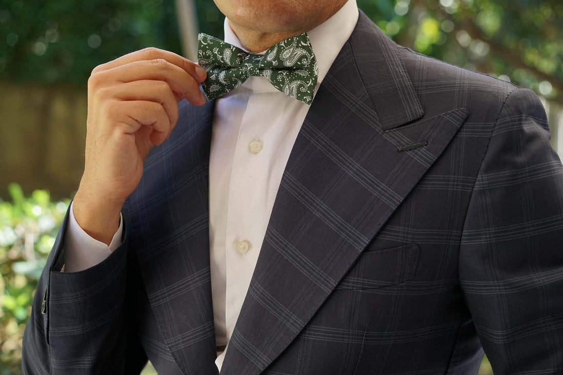 This superb cotton pre-tied bowtie offers an artisanal green palette with a white paisley teardrop pattern. Beautifully crafted by hand and tailored from cotton, the Milan Paisley Green Bow Tie is a fruition of unmistakable quality. Elevating your tailored looks with a high-quality presence, the Milan Paisley Green Pre-tied Bowtie marries sophistication with superior craftsmanship. The Brothers at OTAA recommend it be worn to the boardroom for a confident edge.