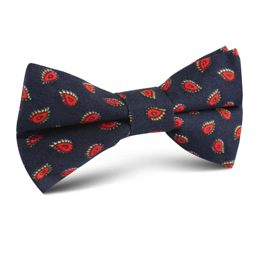 Paisley patterns have long held regal associations; they were reserved for noble regalia in Ancient Persia. Finessed with an artisanal paisley teardrop pattern, this Milano Navy Blue Paisley Boys Bow Tie will undoubtedly add a sophisticated accent to your child’s outfits. OTAA’s hand-stitched approach to tailoring means this kids bowtie is smooth to the touch and emanates a high-quality presence as part of formal attires. The indulgent navy palette is met with ebullient red and yellow teardrop features for a refined outlook.
