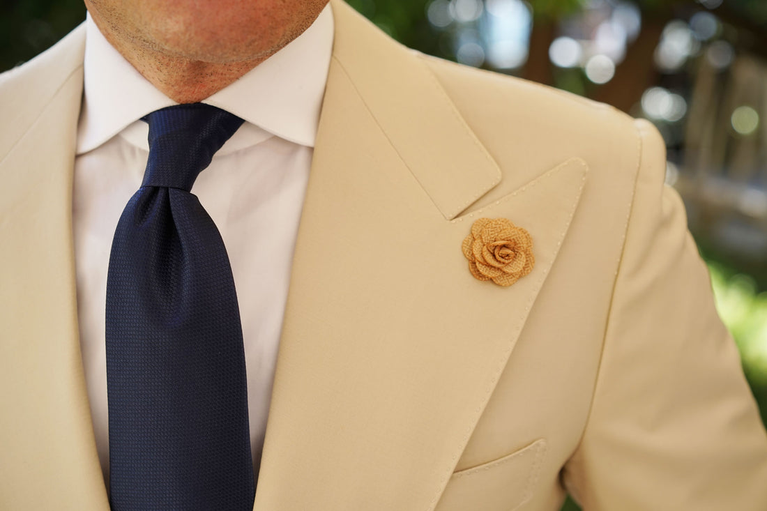 OTAA's Mini Chino Brown Lapel Flower is boastful of flourishing design and intricate detail. Offering luxurious layerings of fabric, and a hand-crafted flower design, this lapel is fruitful with textural intricacy. The floral design is embossed on a hand-chiselled silver rhodium pin that ensures unmatched quality and style. The brown complexion invokes a versatile palette that will pair perfectly with a crisp white shirt. The perfect accompaniment to formal events, this Mini Chino Brown Lapel Flower is imbued with sentiments of timeless elegance and impenetrable class.