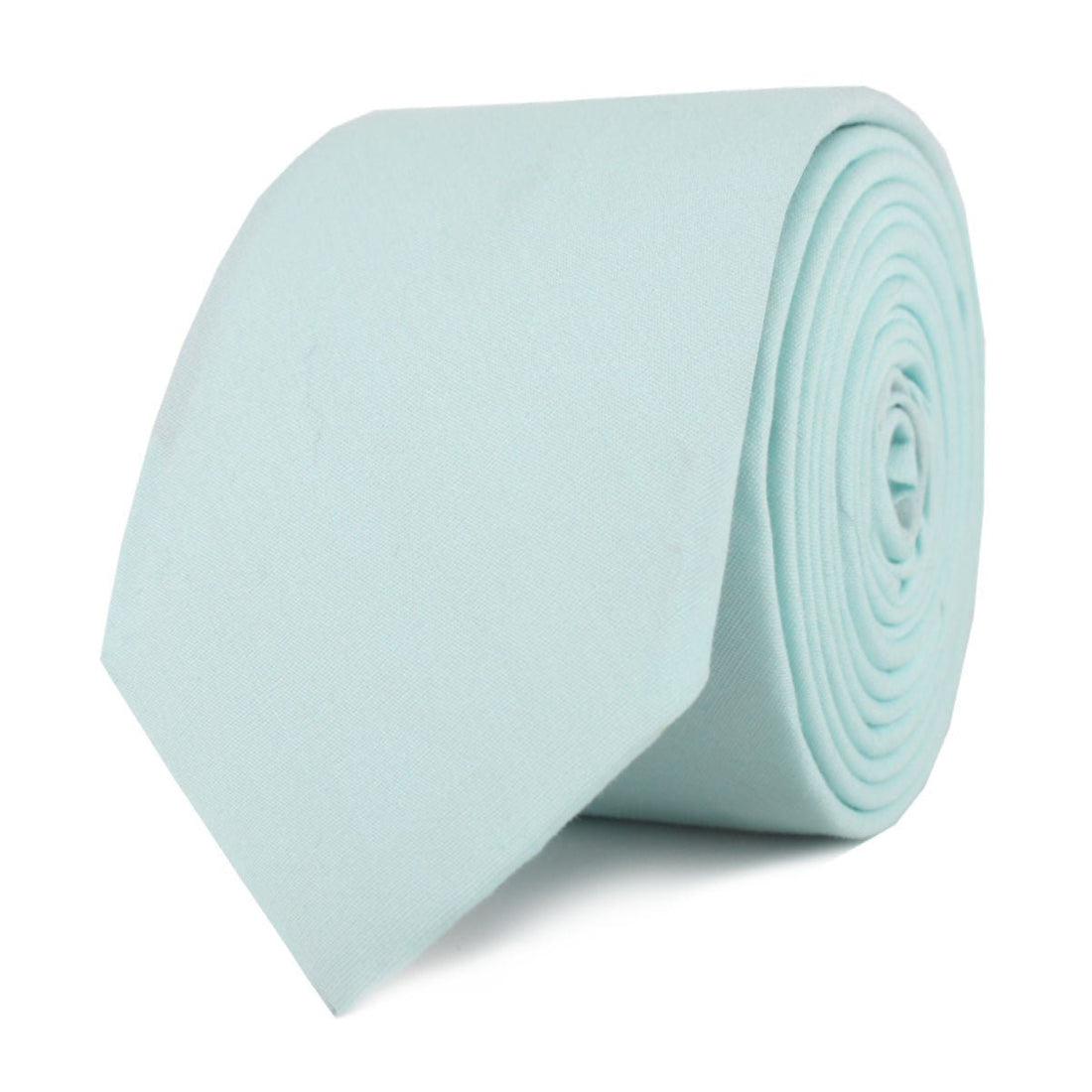 Suit up to perfection with the beautiful solid skinny ties by OTAA. This Mint Blue Cotton Skinny Tie features a refined matte finish, giving just the right amount of sheen that's perfect for formal events, important business meetings or weddings. This durable skinny tie is never short on style and you'll be receiving compliments for years to come.