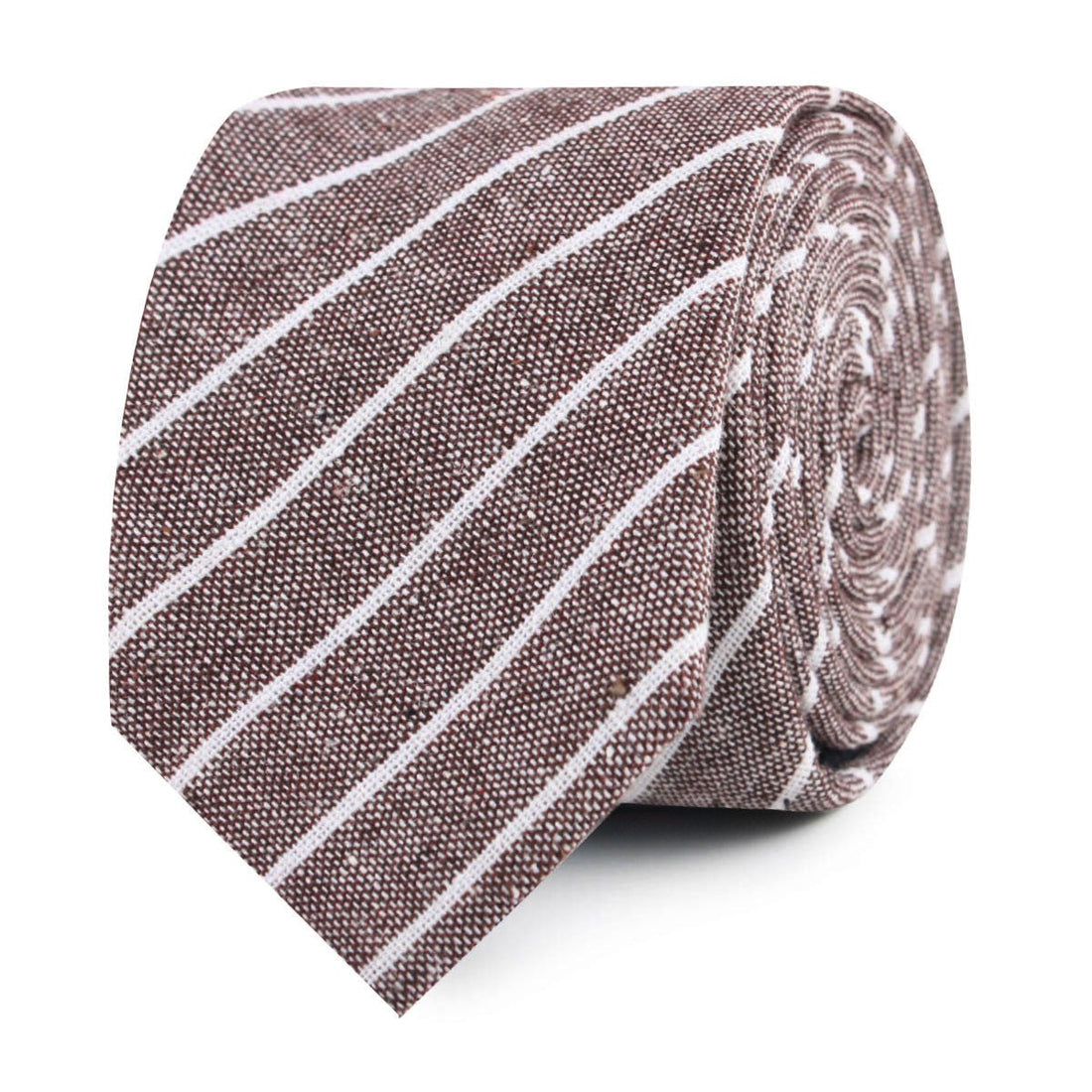 The Brothers at OTAA take their designs seriously, which is why this Mocha Brown Pinstripe Linen Skinny Tie is a product of method research. "Immersion is the key to success," the elder brother professes as he takes the final sip of his double-shot mocha. This Mocha Brown Pinstripe Linen Thin Tie offers a breathable fabric that’s subtly textured and soft on the skin. Adorned with eye-catching brown and white diagonal stripes, this skinny tie makes a stylish addition to your boardroom and weekend tailoring. Delicately hand-stitched and tailored with elegance, the high-quality aspects of this Mocha Brown Pinstripe Linen Skinny Tie are unmistakable. Designed exclusively by the Brothers at OTAA.