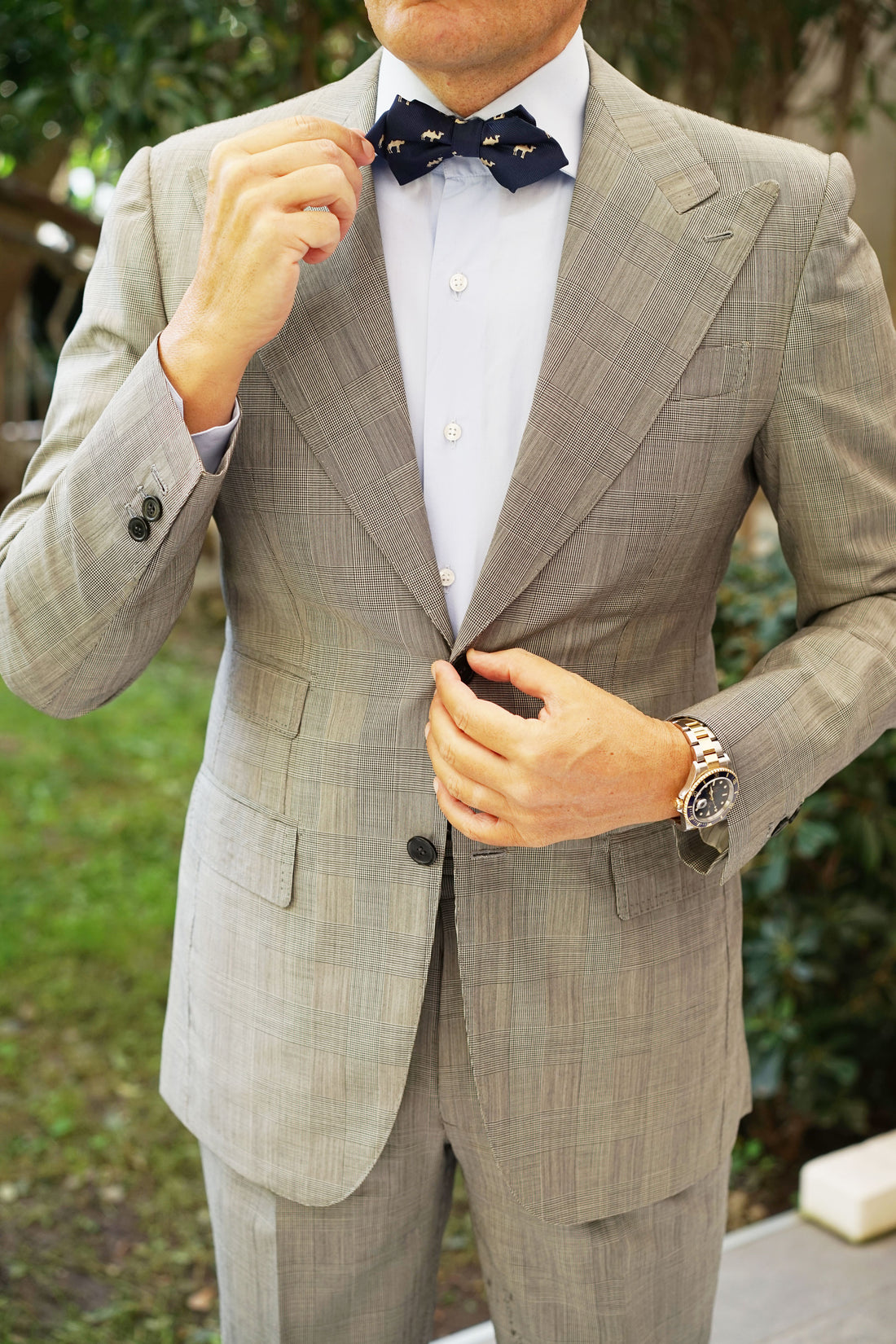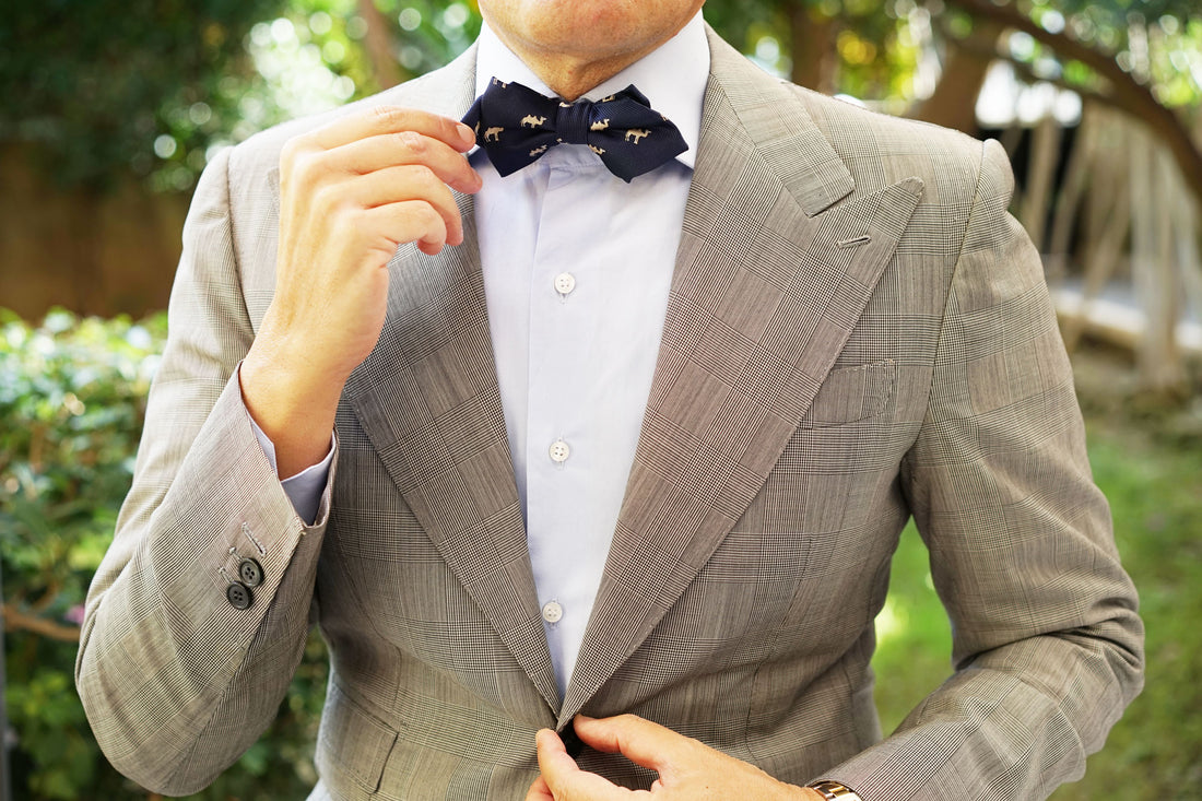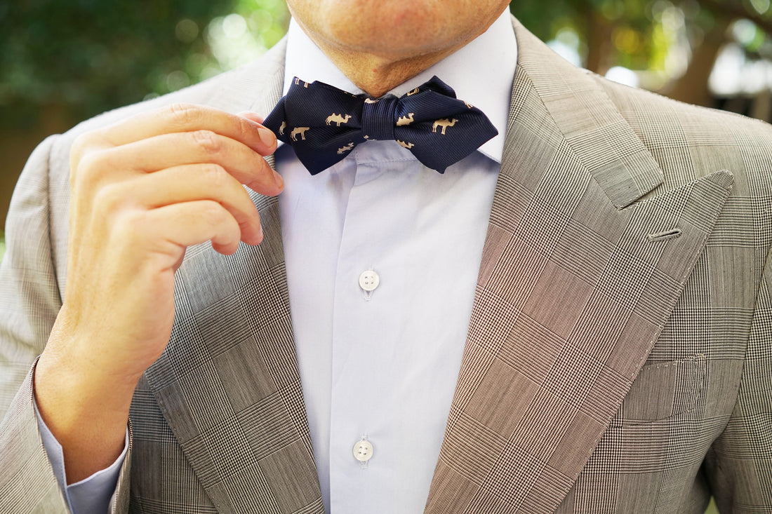 The elder brother at OTAA justifies the Mongolian Camel Diamond Bow Tie – “If we’re going to do the Animal Kingdom, we’re going to include every animal, especially the Mongolian Camel." Our hand-sewn method allows the Mongolian Camel Pre tied Diamond Bowtie to exhibit extraordinary detail as there is little machinery used in the crafting of this tie. Touches such as these make all the difference. Camels are social animals that roam the deserts in search of food and water with up to thirty other camels. Inspired by the loveable and social mammal, this Mongolian Camel Diamond Bow Tie exudes sophistication and is hand cut and sewn on a classic navy backing. Designed exclusively by The Brothers at OTAA.