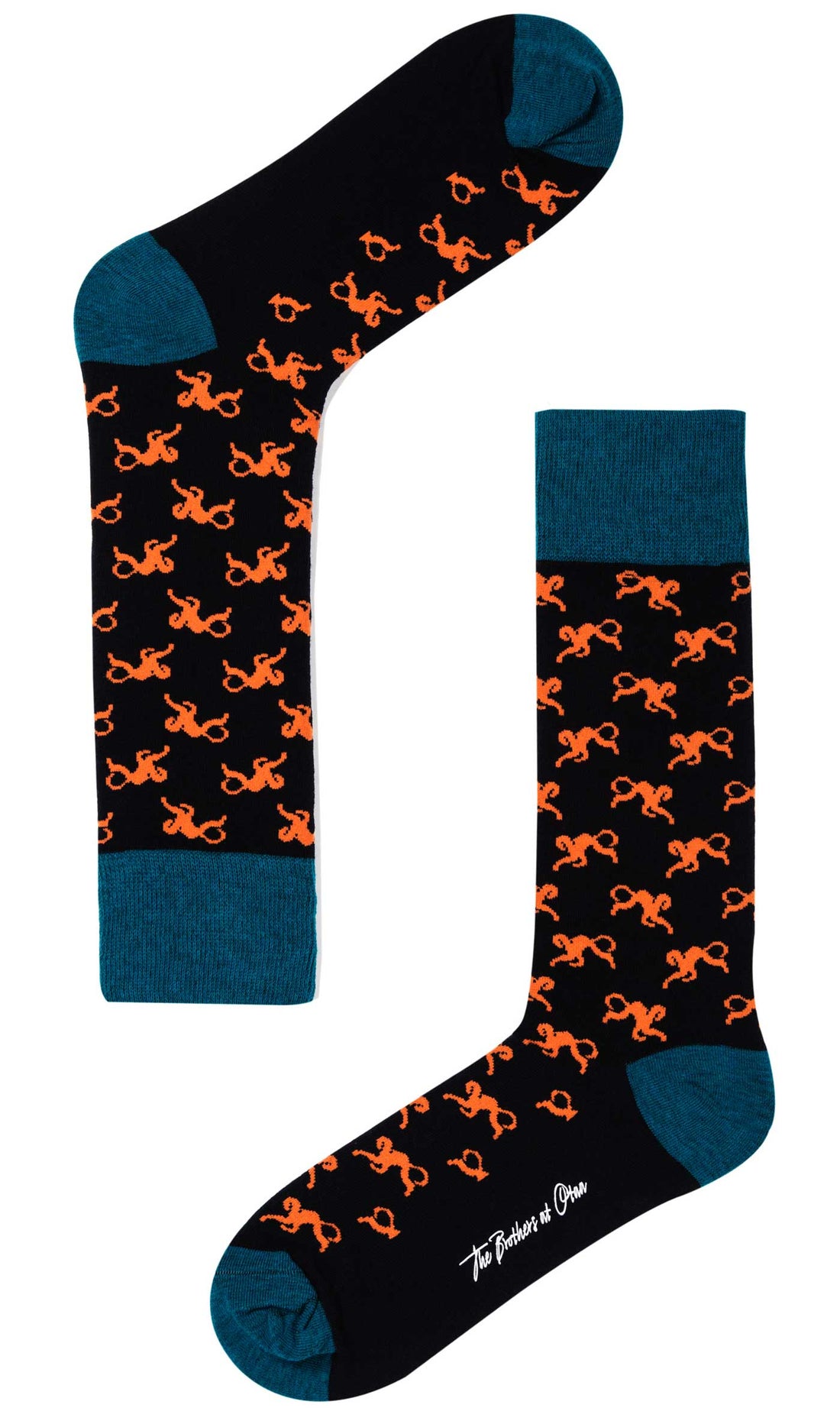 Get down to monkey business with these Monkey Magic Socks and drive your peers bananas. This playful print on midnight blue canvas will liven up your outfit and have you swinging through the day with ease. These are heavenly crafted from a combed cotton material and finessed with a 200 needle stitch to ensure the utmost luxury on your monkey adventure.