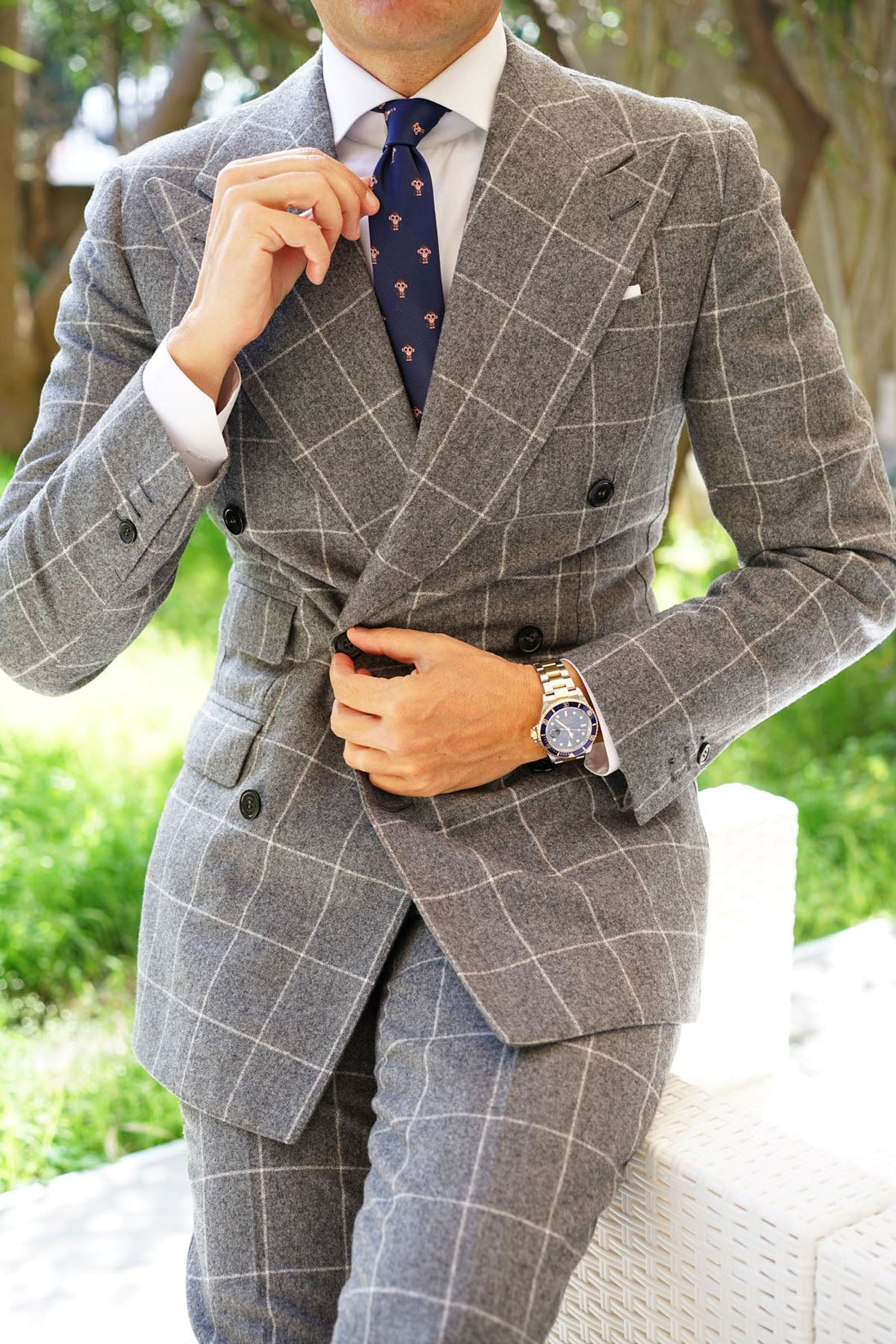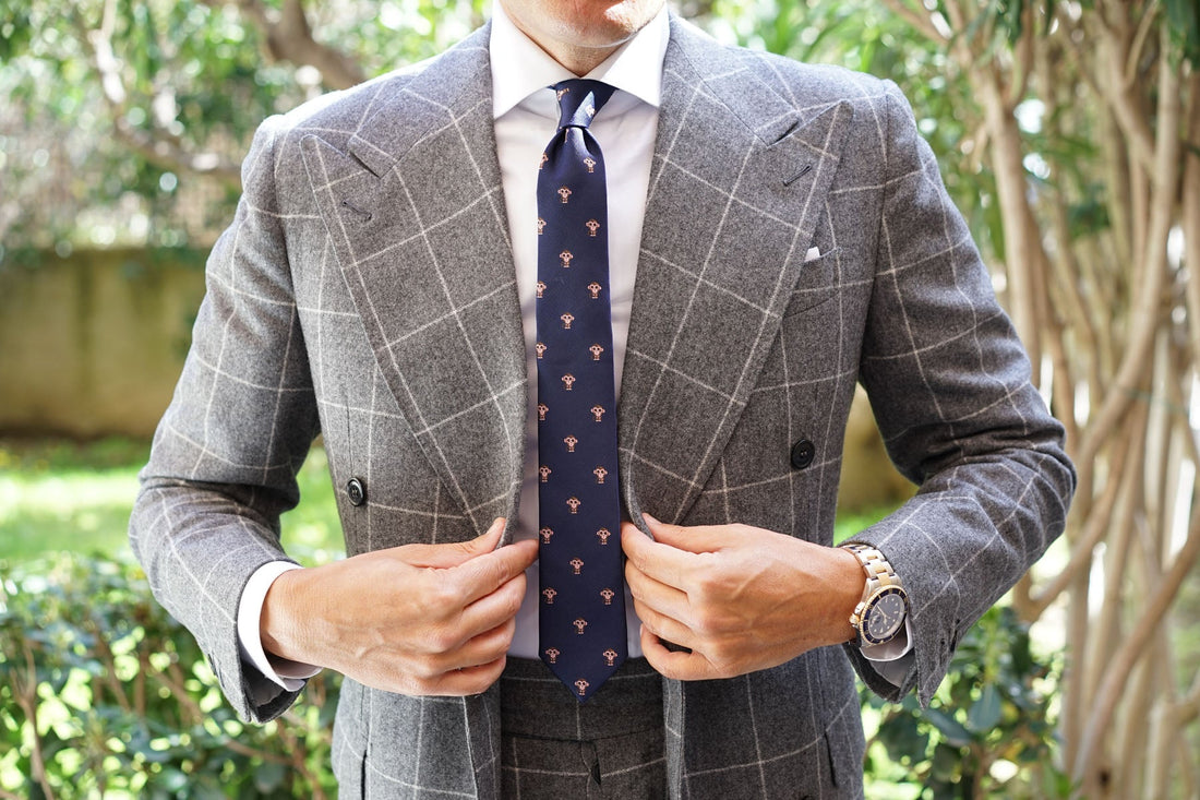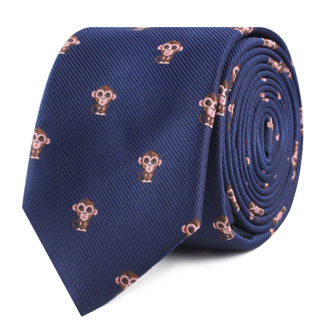 Punctuate your tailoring roster with this dashing Monkey Skinny tie by the Brothers at OTAA. To communicate, monkeys use facial expressions, vocalisations and body movements. Inspired by the primate that just needs to furrow its brow to show that it’s hungry for bananas, we bring you our cheeky Monkey Skinny tie. The classic navy blue threading through this design gives the Monkey Skinny tie a modern update with a slim, streamlined cut. Match the sharp silhouette with a trim-fitting shirt and finish with a collar bar for added flair.