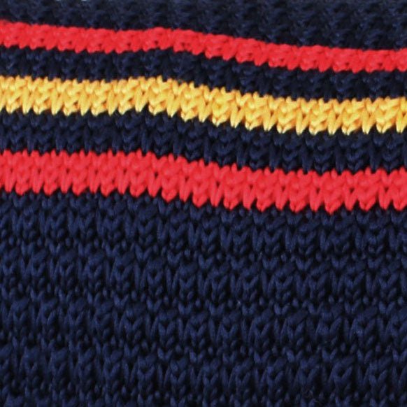 The exclusive designs by the Brothers at OTAA are often inspired by their travels abroad; this vibrant Moroccan Striped Knitted Tie bares no exception. Inspired by the lively colours and bustling medinas of this North African country, this in-house design showcases exotic hues and enthralling textures. Embellished with ebullient navy, red and yellow details, this lustrous design emanates the cultured air of a well-travelled man. Handcrafted from a plush knitted fabric and finessed with a diamond-cut, the Moroccan Striped Knitted tie delivers an exquisite feel and inviting appearance. This adventurous knitted tie, when paired with crisp-whites, will have your evening ensembles looking fruitful with possibility.