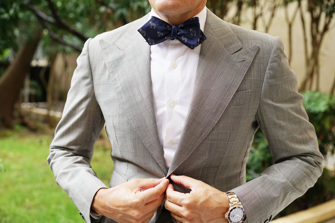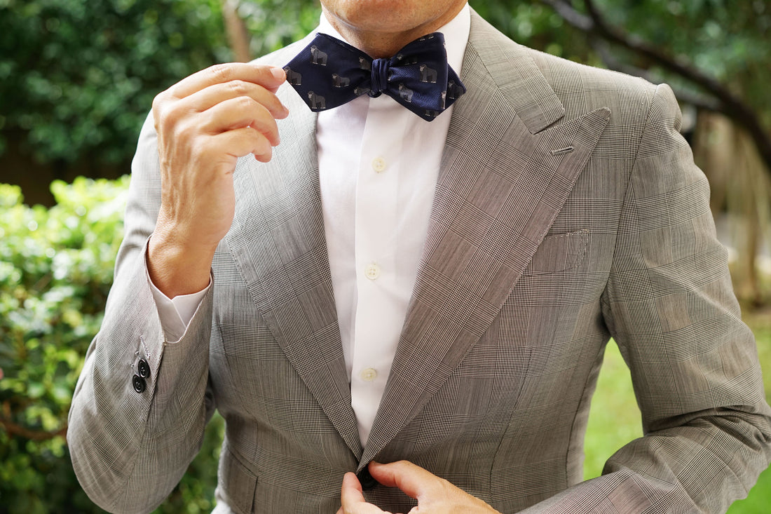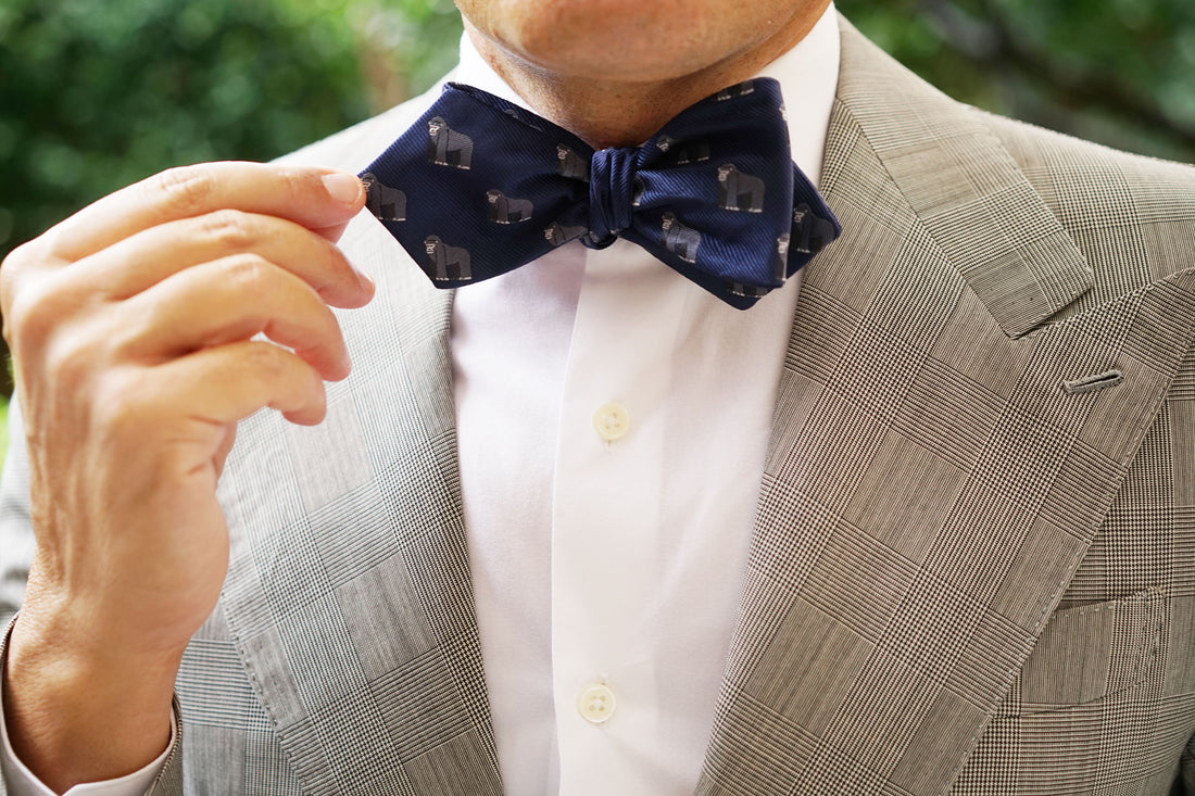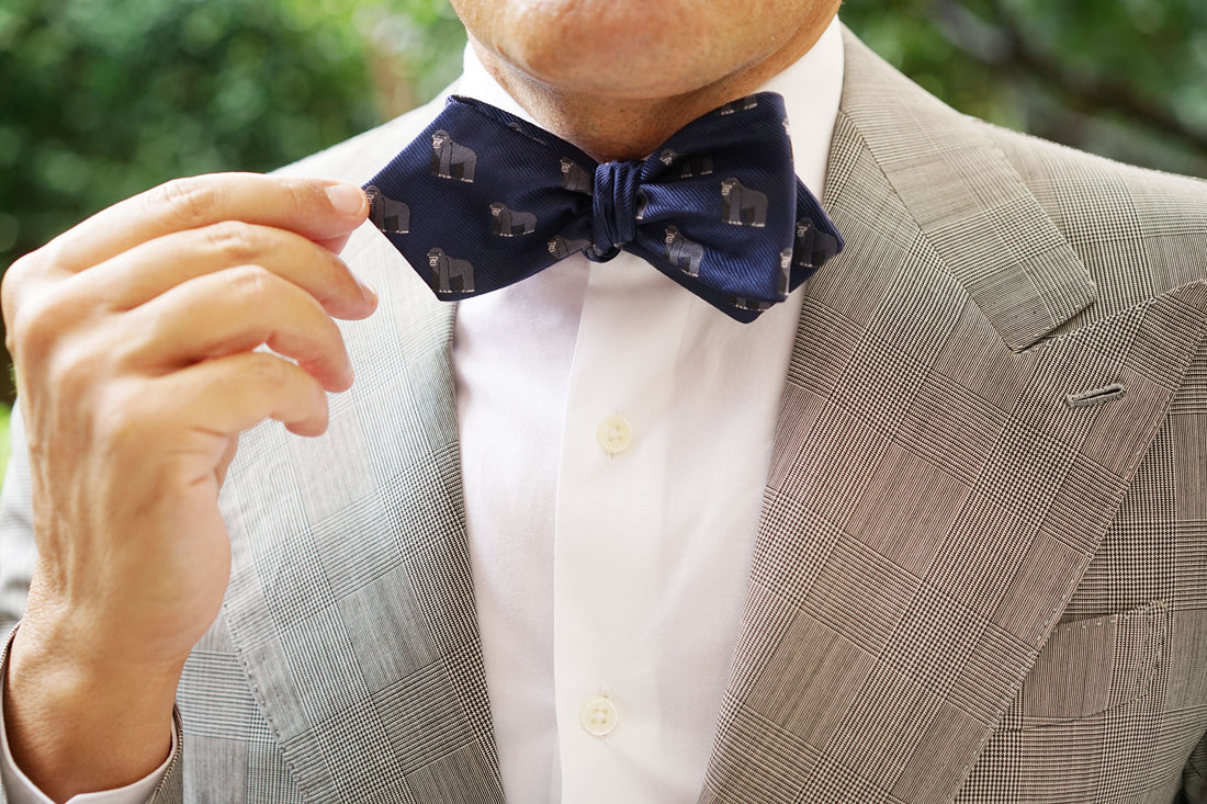 The elder brother at OTAA justifies the Mountain Gorilla Diamond Bow Ties Self-Tie – “If we’re going to do the Animal Kingdom, we’re going to include every animal, especially Mountain Gorillas." Our hand-sewn method allows the Mountain Gorilla Diamond Self-Tie Bow to show extraordinary detail as there is little machinery used in the crafting of this tie. Touches such as these make all the difference. Mountain Gorillas are descendants of ancestral monkeys and apes found in Africa and Arabia during the start of the Oligocene epoch (34-24 million years ago). The fur of the mountain gorilla, often thicker and longer than that of other gorilla species, enables them to live in colder temperatures. Inspired by the furry primate, this Mountain Gorilla Diamond Bow Ties Self-Tie exudes sophistication and is hand cut and sewn on a classic navy backing. Designed exclusively by The Brothers at OTAA.