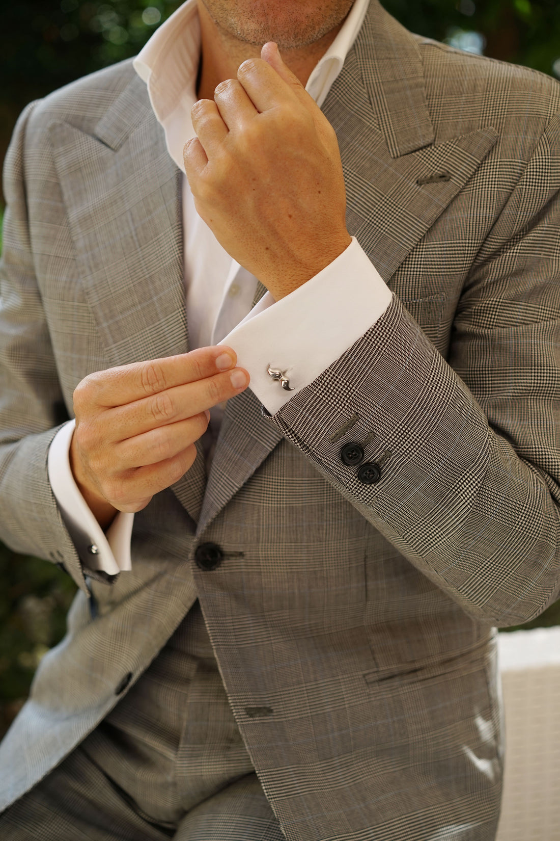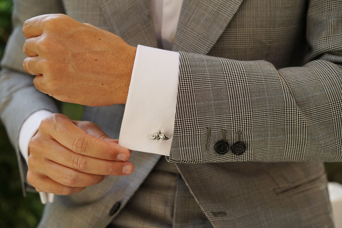 Timeless sophistication and impenetrable class are echoed through the details of OTAA's Moustache Cufflinks. A style observed on the statue of the 4th Dynasty Egyptian prince Rahotep (2550 BC), the moustache has accompanied men of great nobility throughout history. Often associated with power and wealth, these Moustache Cufflinks were designed to embolden your ensemble with grandeur. These cufflinks are flawlessly hand-chiselled from rhodium and coated in a luxurious gloss silver finish. Executed with immaculate precision, these cufflinks are adorned with an exquisite moustache embellishment. The silver finishing on these Moustache Cufflinks will incite a cool toned palette to finesse your attire with sophistication.