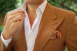 The Mr Jones Orange Paisley Wool Pocket Square is a great pick if you want to show your adventurous side with its paisley design and bold colours. The wool fabric is light and airy and will feel light in your pocket so you can move with ease.