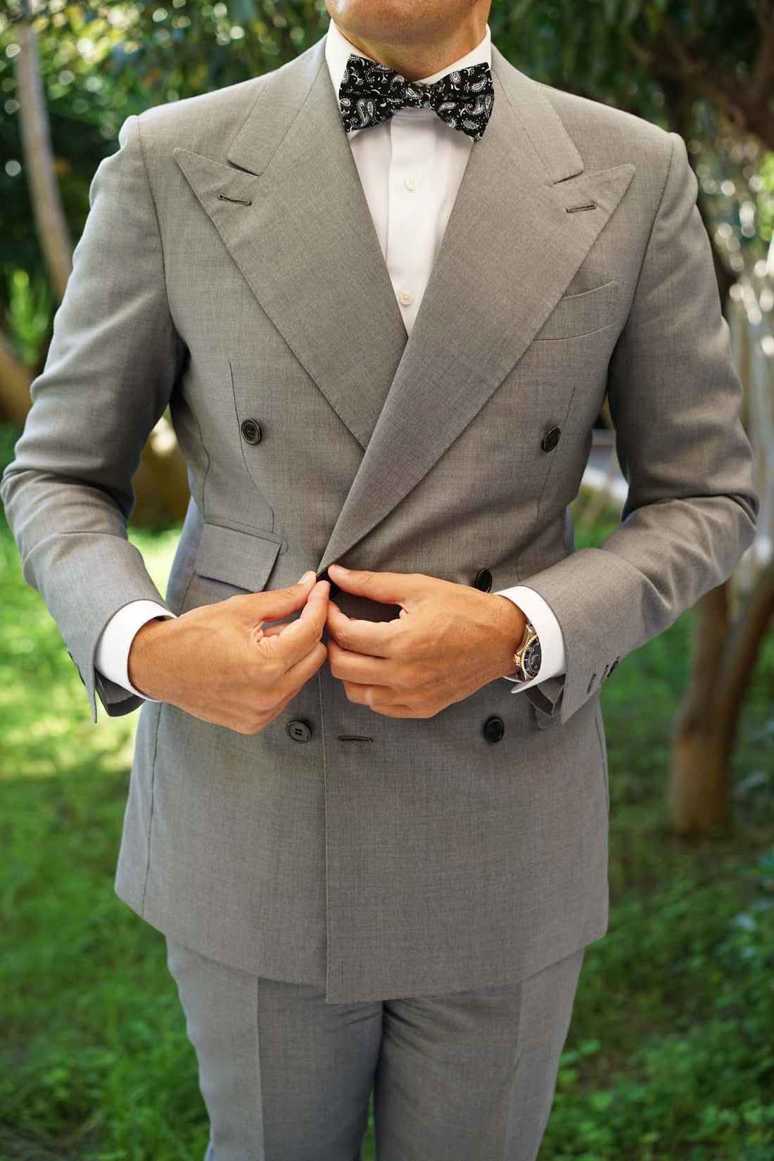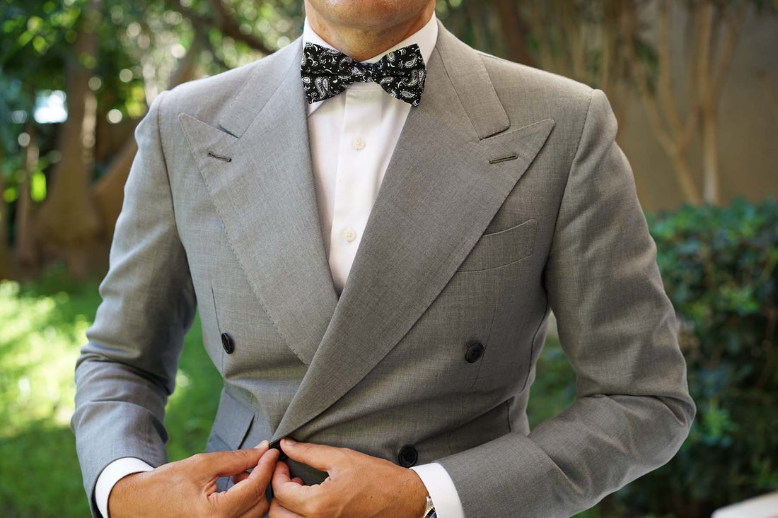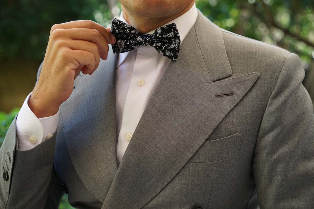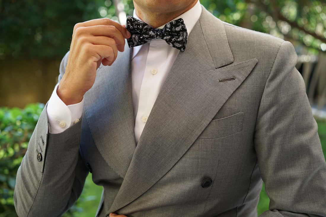 Indulgent and sleek, OTAA’s Mr Pollard Black Paisley Bow Tie adds a sophisticated element to your formal assemblage. Paisley designs originated in ancient Persia in the 16th century and were used to decorate the crowns and court garments of nobility. The floral motif came from the Sassanid dynasty and was used by royalty to communicate their strength. Decorated with exquisite paisley teardrops, this pre-tied bowtie is fit for a king; or a very stylish man.